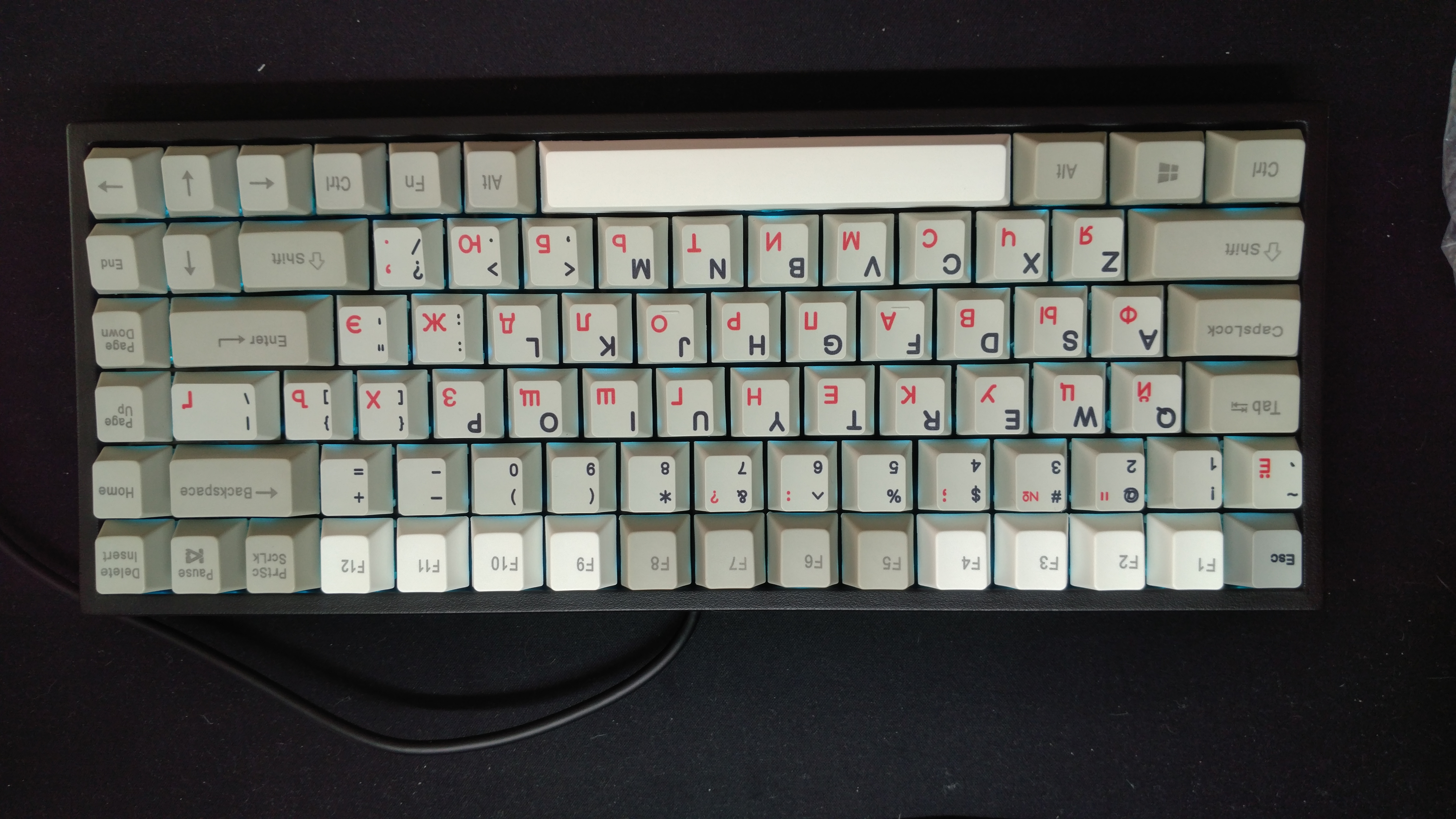 Доработал свою Keycool84. Стабилизаторы были подрезаны с завода, а на стабилизаторах пробела были приклеены резиночки. Поставил кейкапы (те которые пришли неправильного цвета) Ru Base от Kprepublic.