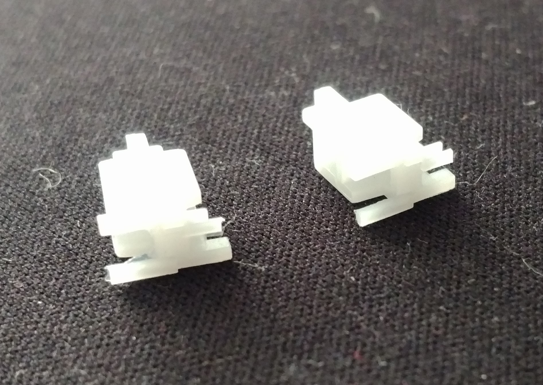 Стабилизаторы представляют из себя специальную систему, которая обеспечивает срабатывание длинных клавиш вне зависимости от точки нажатия. От её качества зависит равномерность хода таких клавиш как Space, BackSpace, Shift, Enter, + (NumPad), 0 (NumPad) и Enter (NumPad). Существует всего два оригинальных типа стабилизаторов, разработанных компаниями Costar и Cherry, но помимо них на рынке можно встретить массу более дешевых аналогов, производимых на территории Китая. Costar. Стабилизаторы Costar состоят из металлических клипс, металлического прута и пластмассовых крестовин. Клипсы устанавливаются на пластину, затем на них устанавливается прут, который вдевается в крестовины, которые, в свою очередь, вставляются в клавишу. Система от Costar полностью открыта и легко поддается ремонту в случае возникновения неполадок. Такие стабилизаторы принято смазывать силиконовой смазкой. Во-первых, нажатие станет более плавным, во-вторых – смазка позволит избежать неприятных звуков и скрипов при использовании. Плюсом стабилизаторов Costar обычно считается более приятные "ощущения" при нажатии по сравнению с Cherry. Минусы гораздо более осязаемые: во-первых, процесс снятия и установки кейкапа значительно более сложный, чем в случае с Cherry, во-вторых, без смазки при нажатии на клавишу могут издаваться неприятные звуки и скрипы. Cherry. Принцип работы стабилизаторов Cherry схож со стабилизаторами Costar, но главное различие заключается в том, что все части "спрятаны" под корпусом, поэтому при снятии клавиши сам механизм стабилизатора остается нетронутым. Основное преимущество стабилизаторов Cherry заключается в легкости снятия клавиши, клавиша снимается так же легко, как и с обычного переключателя. Минус заключается в том, что меняются ощущения при использовании клавиш с стабилизаторами: во-первых при отпускании клавиши удар получается чуть более жестким, а во-вторых, при выжимании клавиши до упора нажатие ощущается менее четко.