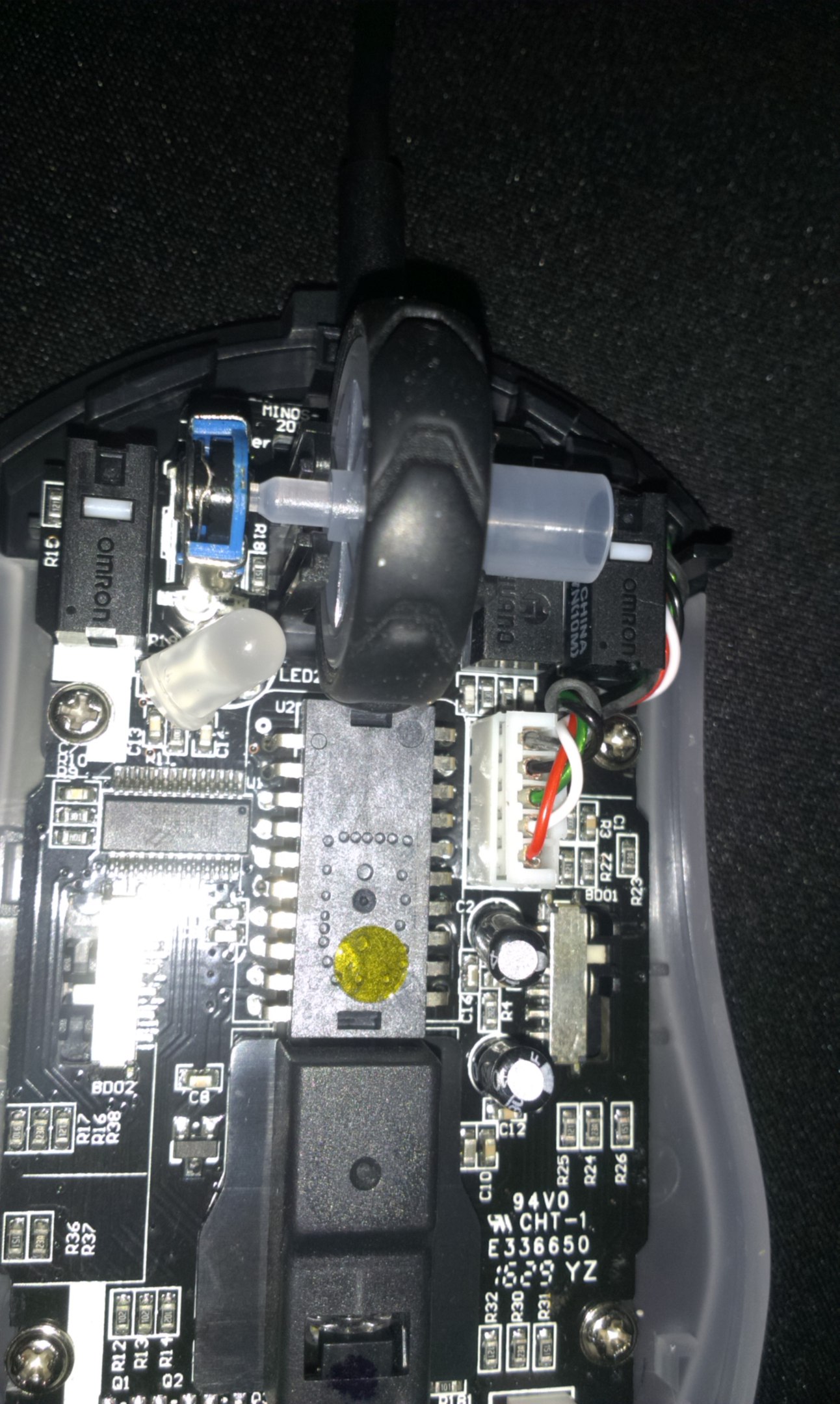 разобрал свой "бракованный" кугар минос, всего один винт под нижней ножкой находится внутри все довольно качественно, микрики кетайские омрон, под колесом - хуано, имееется утяжелитель ровно по центру. ну и причина закусывания колеса это его люфт и вследствие этого люфта оно двигается взад и задевает сам сенсор. как можно было так провафлить при сборке - непонятно, щас думаю как исправить это. А сами ножки приклеены тупо на скотч мышь достойная, но такие косяки отталкивают от этого производителя