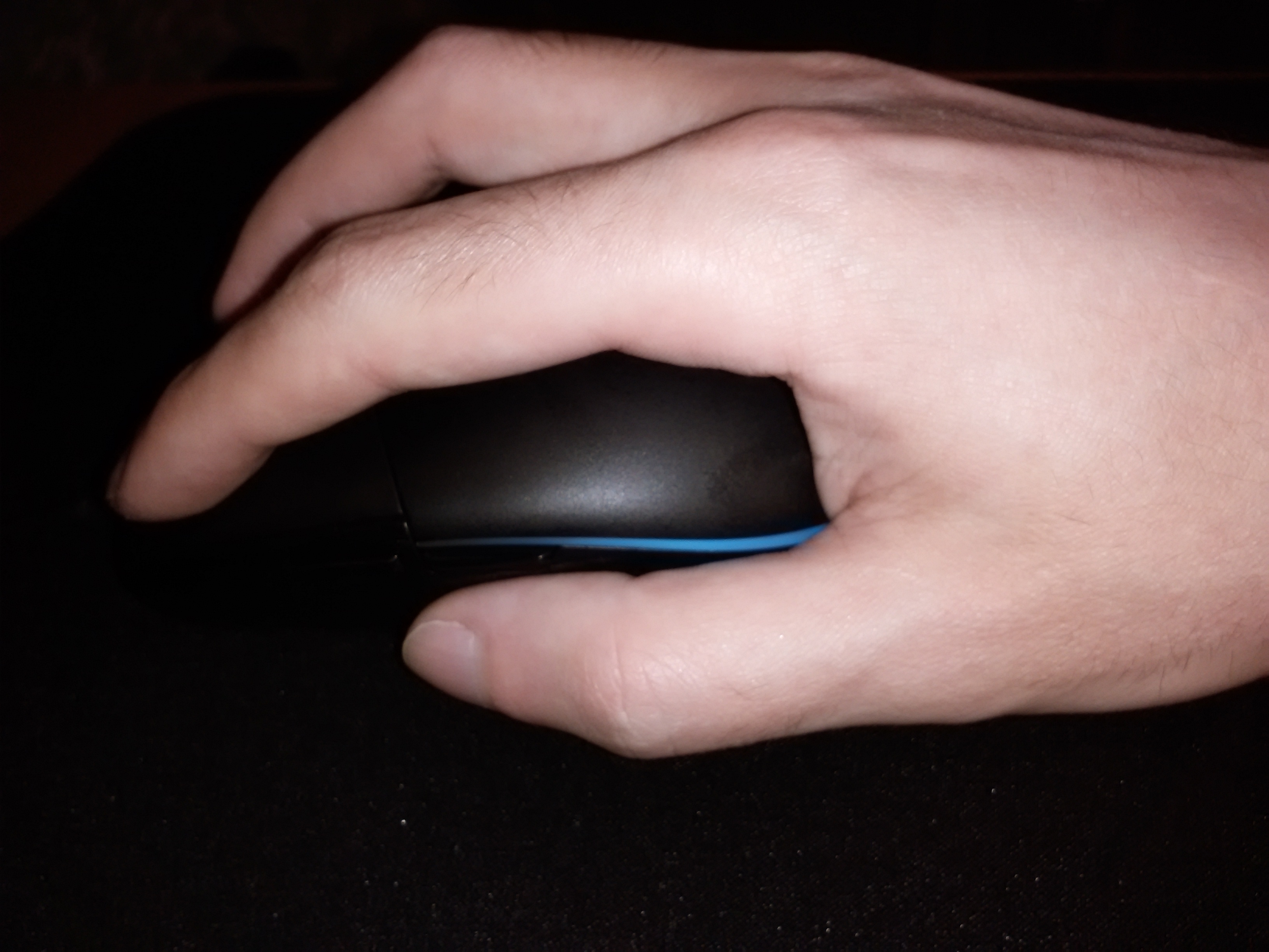 Хват пальцами #77 Ладонь не лежит на мышке. С одной стороны мышь придерживает большой палец, с другой безымянный и мизинец. Нажатие на на мышку происходит подушечками пальцев.