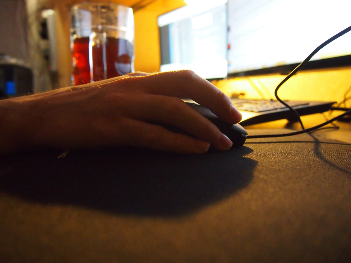 Хват ладонью #77 Вся ладонь лежит на мышке. По бокам мышку придерживают большой палец и мизинец. Такой хват лучше всего подходит для работы в офисе, т.к. обеспечивает наименьшую утомляемость руки во время работы.