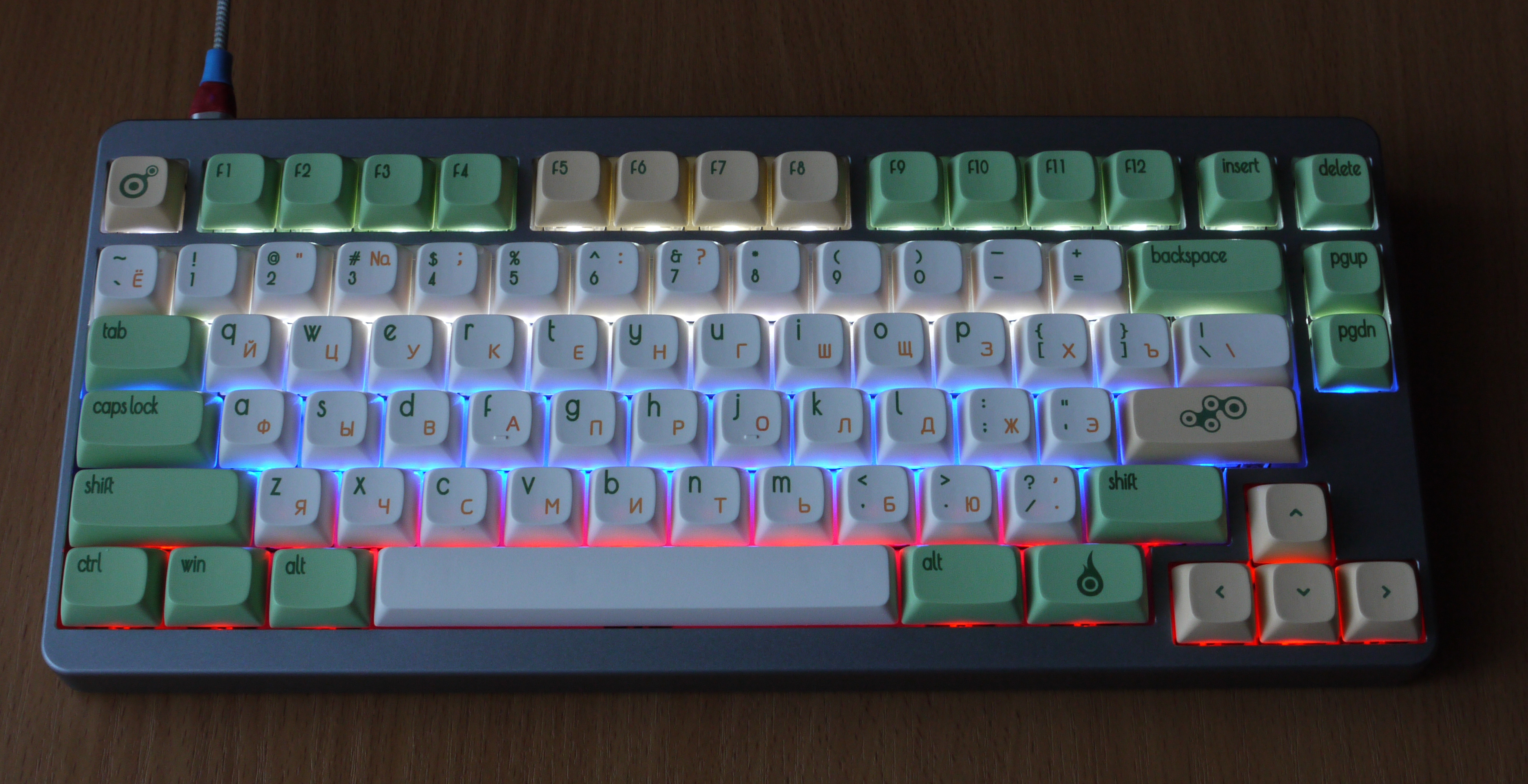 Добавлено спустя 9 минут 28 секунд: d3ma Некоторые PBT кейкапы всё-таки слегка просвечивают — например, вот на этих (либо, видимо, то же самое в магазинах Real Eagles Trading Store, CuXiu Store, Keyboards China Store) немного заметно на красном цвете (тут на ID80 обычная подсветка из одноцветных светодиодов, просто в разных рядах поставлены светодиоды разного цвета):