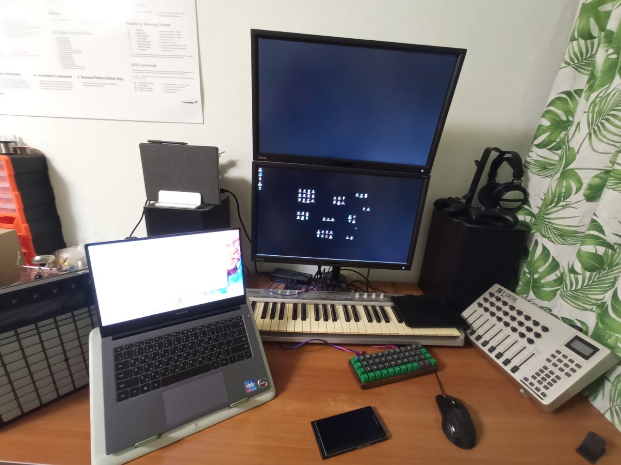Пары стоек не хватает. Приходится ноут с пушем менять местами. Рядом второй стол под пайку. Кассетница немного помогла разгрузить. В общем, есть куда делать лучше