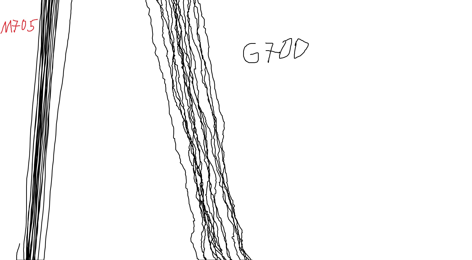 Ради интереса запустил старую М705 и для сравнения поводил обеими в Paint-е. Вот что получилось... Коврик один и тот же, DPI подогнал одинаковые.