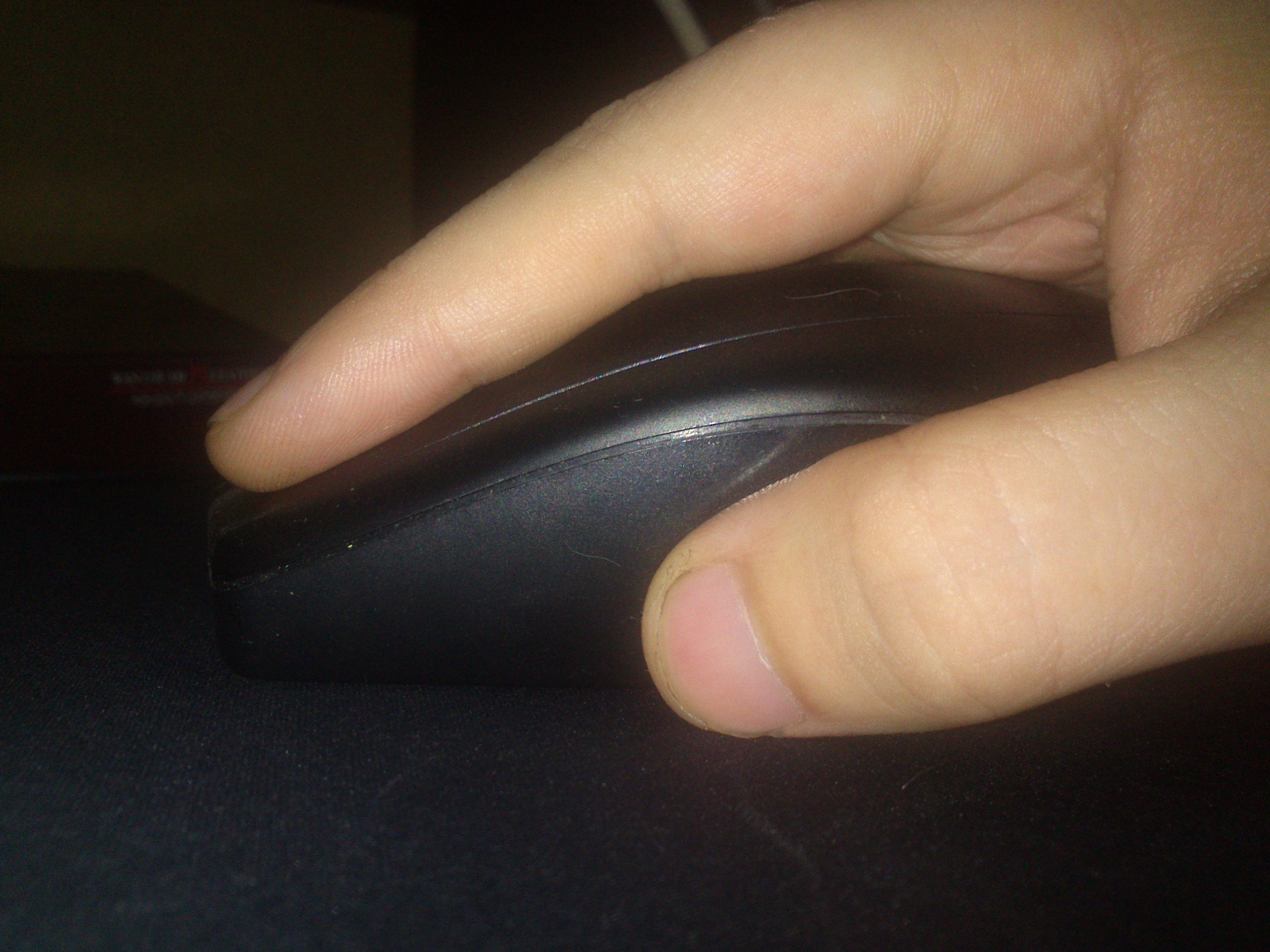 Хват пальцами #77 Ладонь не лежит на мышке. С одной стороны мышь придерживает большой палец, с другой безымянный и мизинец. Нажатие на на мышку происходит подушечками пальцев.