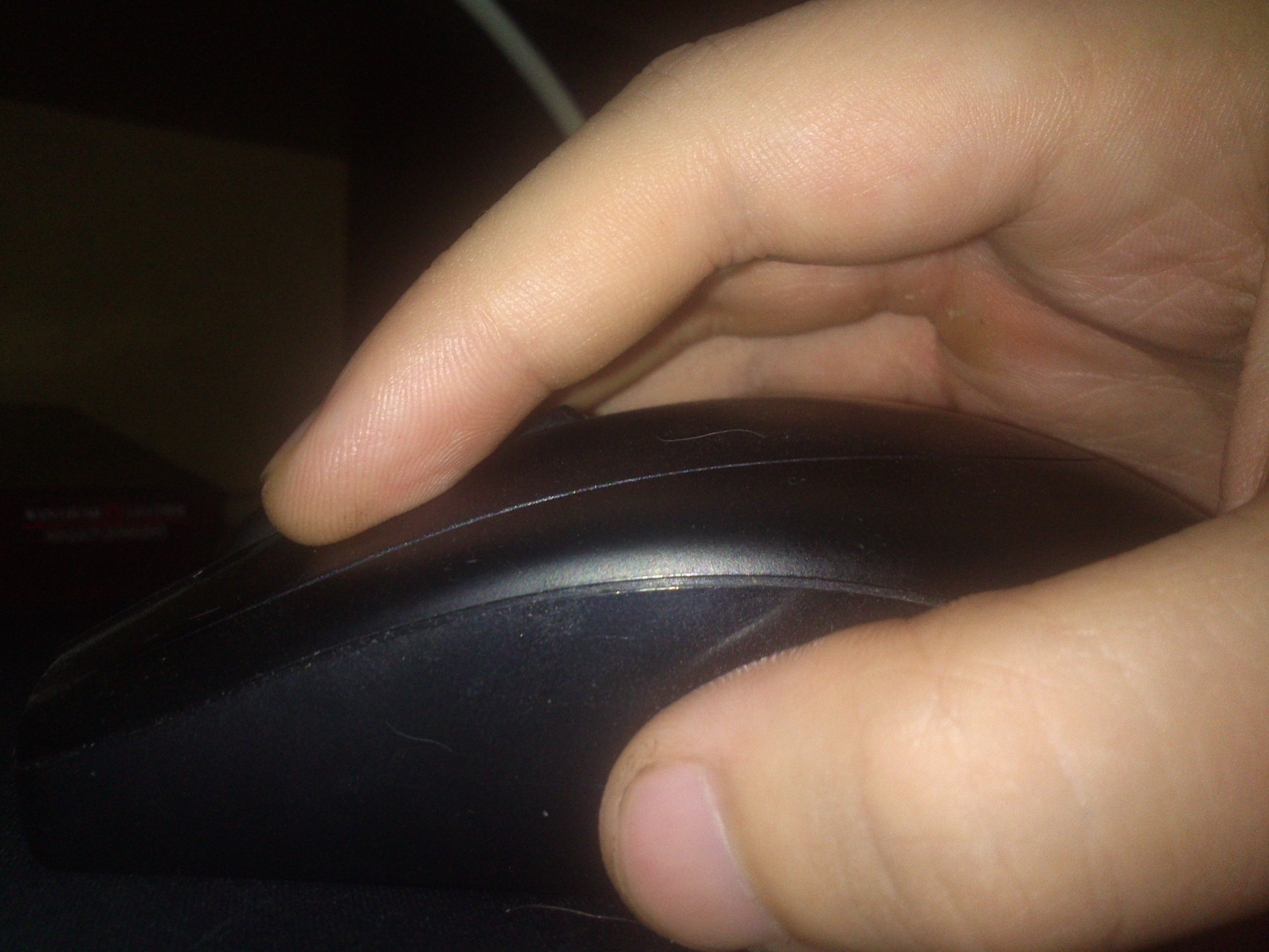 Хват «коготь» #77 Рука располагается аналогично предыдущему пункту, только нажатие на кнопки мыши происходит кончиками пальцев, а не подушечками.