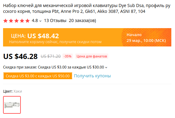 В сете от IDOBAO профиль DSA вроде бы нормальный, но внешний вид оставляет желать лучшего, как и пластиковый звон от тонких капов. Ну и с ценами продавец отжигает: