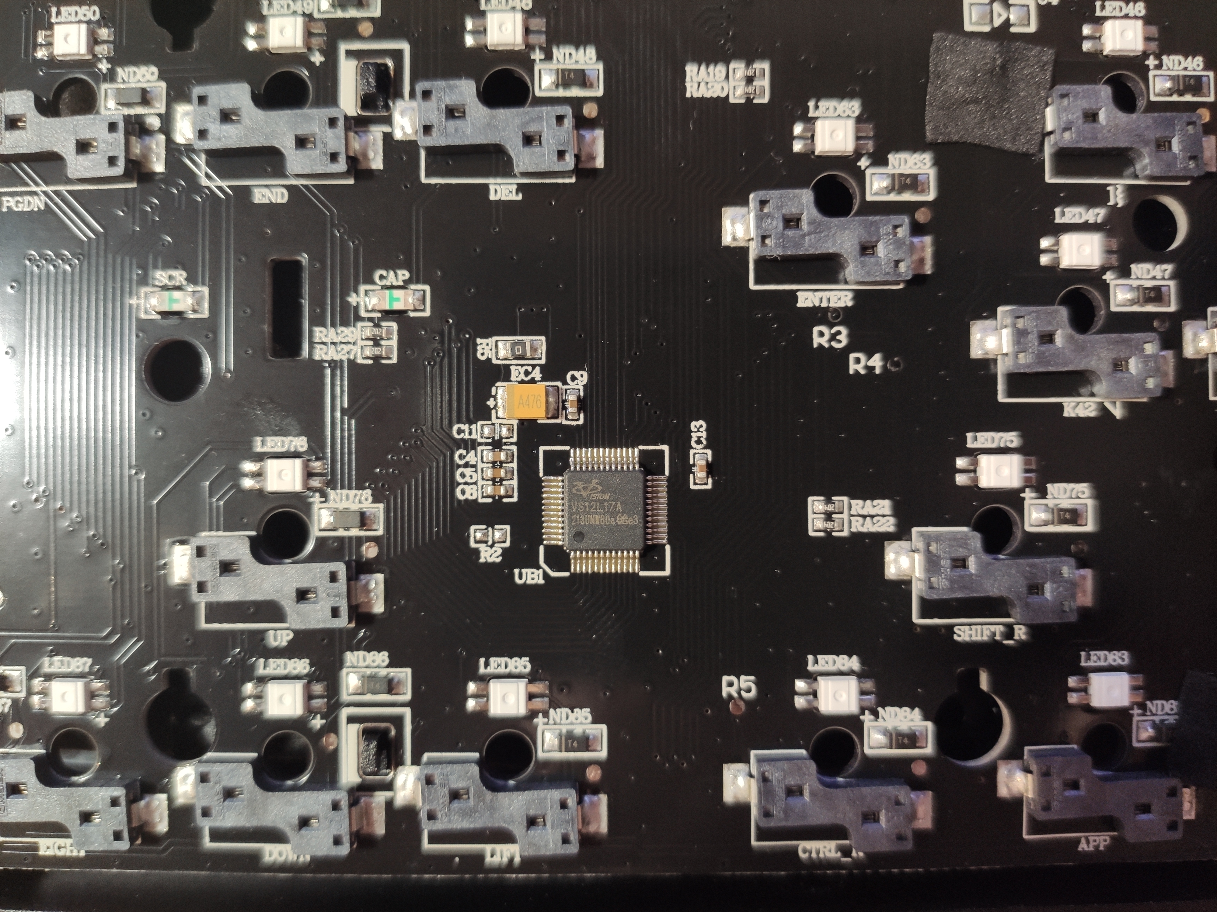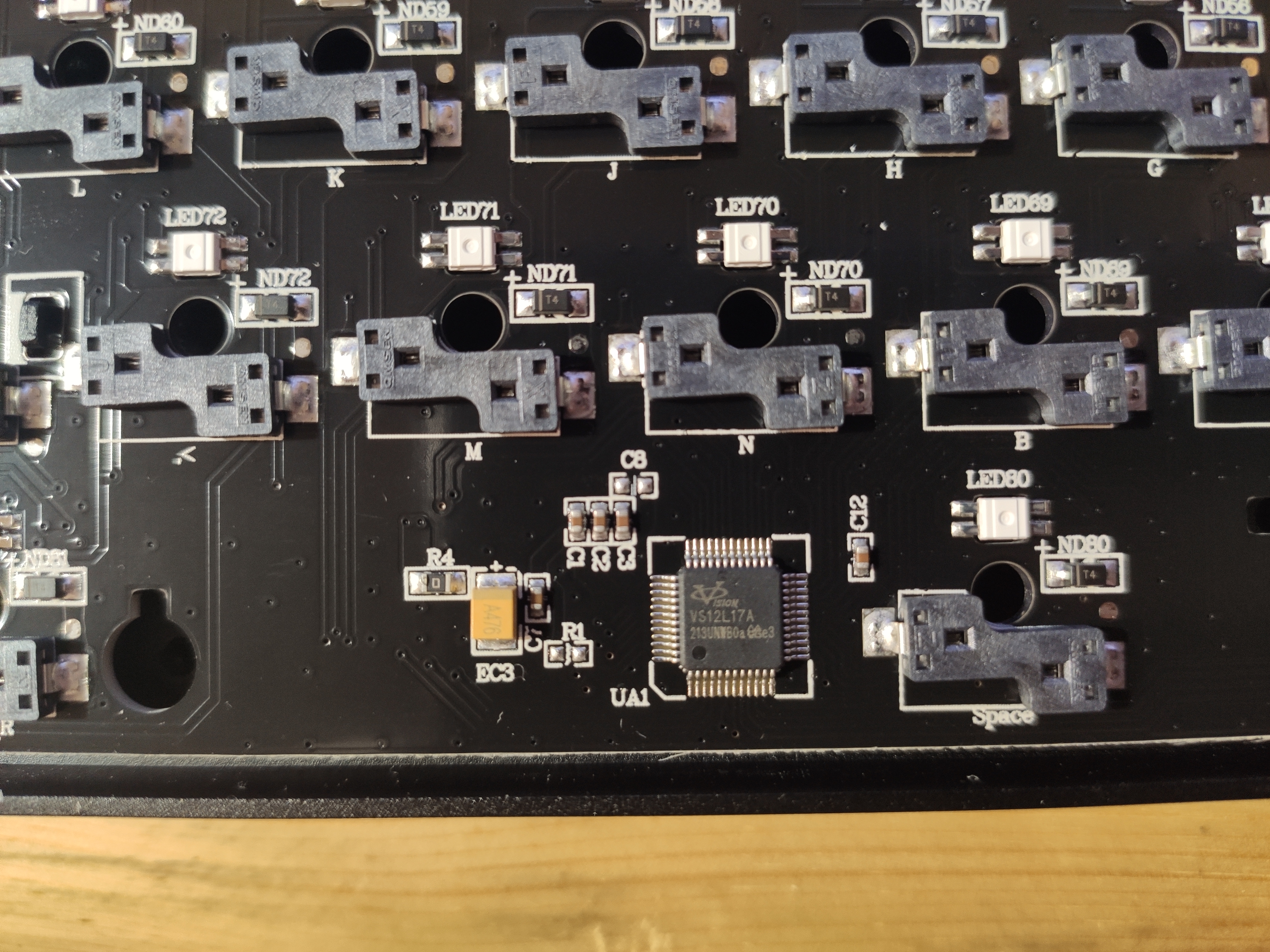 При этом на основном чипе должно быть написано, вероятнее всего, VS11K13A (это переименованный SN32F268). Проблема может быть в том, что для GMMK fullsize появилась новая версия rev4 с чипом VS11K28A, который вроде бы представляет из себя переименованный CH555 (8051 MCU, 8KB SRAM, 64KB Flash), и какой-либо поддержки для этого чипа не ожидается в принципе. Есть вероятность, что аналогичные чипы всплывут и в новых версиях других клавиатур.