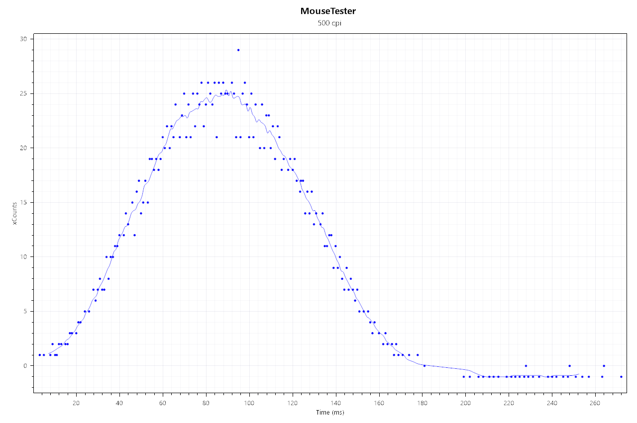 Это график отчётов смещения мыши по горизонтали посылаемых мышью (вертикально на графике) относительно времени (горизонтально на графике) В правом нижнем углу можно так же посмотреть задержки между отчётами мыши, герцовку и просто траекторию. Уже были результаты тестов в этой теме, в поиске находятся по слову mousetester