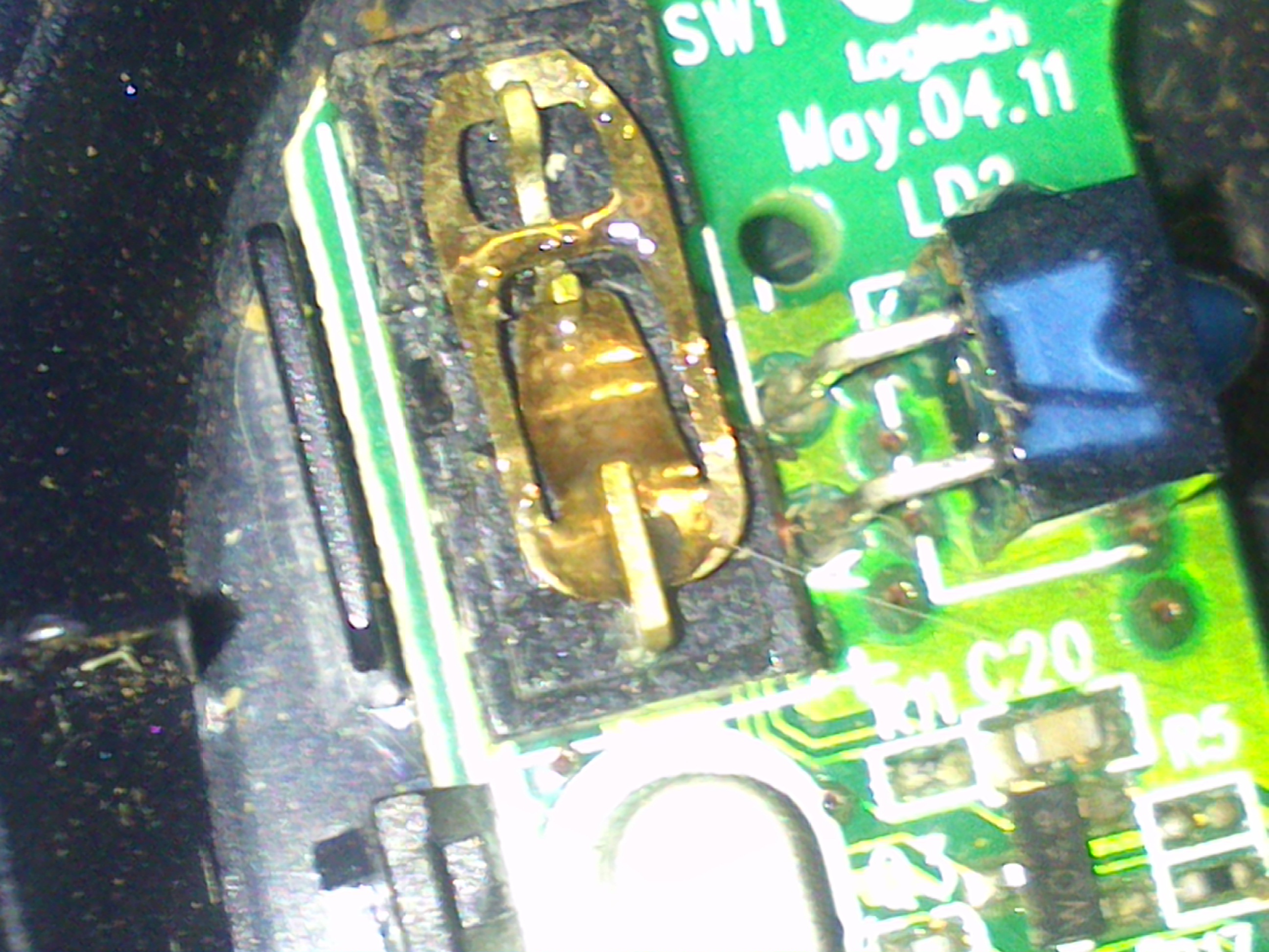 Сделаю то, что многие не станут делать в здравом сознании: Беру мышь, вскрываю микрик, чтоб жир быстрее достиг контактной площадки, капаю загустевший жир со сковородки после жарки мяса и обильно наношу его на контактную площадку.