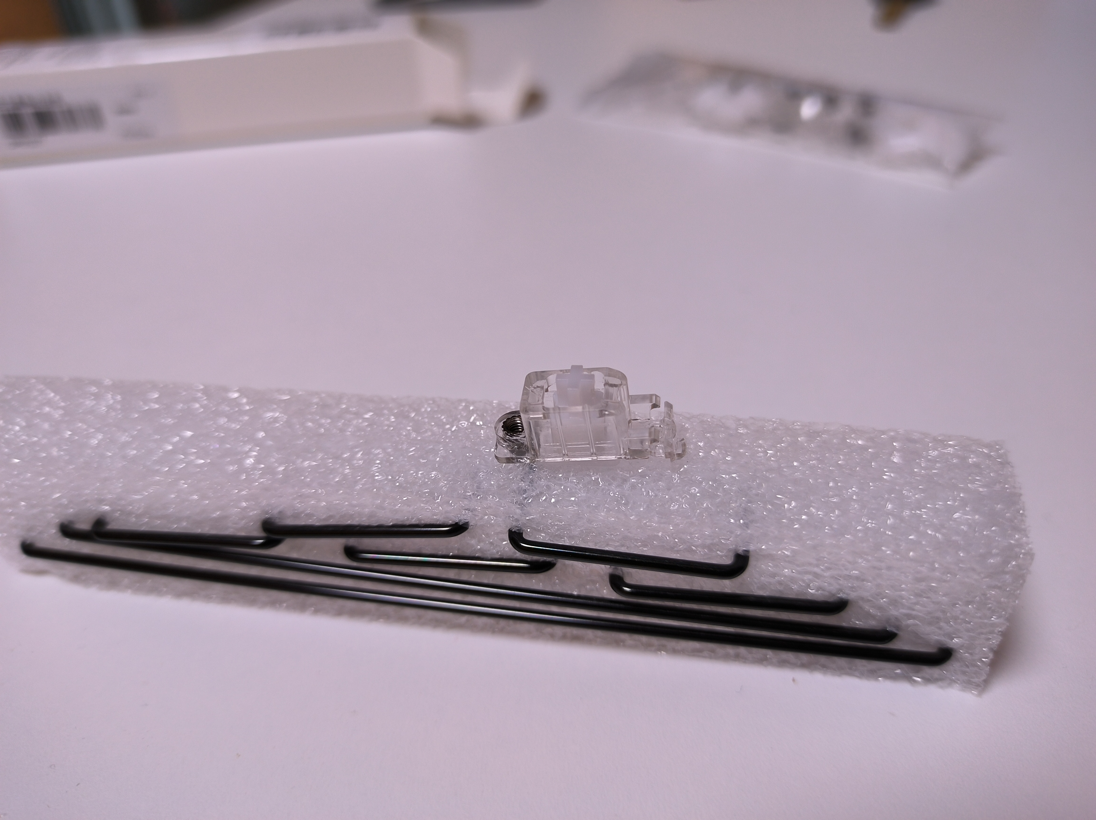 Стабилизаторы представляют из себя специальную систему, которая обеспечивает срабатывание длинных клавиш вне зависимости от точки нажатия. От её качества зависит равномерность хода таких клавиш как Space, BackSpace, Shift, Enter, + (NumPad), 0 (NumPad) и Enter (NumPad). Существует всего два оригинальных типа стабилизаторов, разработанных компаниями Costar и Cherry, но помимо них на рынке можно встретить массу более дешевых аналогов, производимых на территории Китая. Costar. Стабилизаторы Costar состоят из металлических клипс, металлического прута и пластмассовых крестовин. Клипсы устанавливаются на пластину, затем на них устанавливается прут, который вдевается в крестовины, которые, в свою очередь, вставляются в клавишу. Система от Costar полностью открыта и легко поддается ремонту в случае возникновения неполадок. Такие стабилизаторы принято смазывать силиконовой смазкой. Во-первых, нажатие станет более плавным, во-вторых – смазка позволит избежать неприятных звуков и скрипов при использовании. Плюсом стабилизаторов Costar обычно считается более приятные "ощущения" при нажатии по сравнению с Cherry. Минусы гораздо более осязаемые: во-первых, процесс снятия и установки кейкапа значительно более сложный, чем в случае с Cherry, во-вторых, без смазки при нажатии на клавишу могут издаваться неприятные звуки и скрипы. Cherry. Принцип работы стабилизаторов Cherry схож со стабилизаторами Costar, но главное различие заключается в том, что все части "спрятаны" под корпусом, поэтому при снятии клавиши сам механизм стабилизатора остается нетронутым. Основное преимущество стабилизаторов Cherry заключается в легкости снятия клавиши, клавиша снимается так же легко, как и с обычного переключателя. Минус заключается в том, что меняются ощущения при использовании клавиш с стабилизаторами: во-первых при отпускании клавиши удар получается чуть более жестким, а во-вторых, при выжимании клавиши до упора нажатие ощущается менее четко.