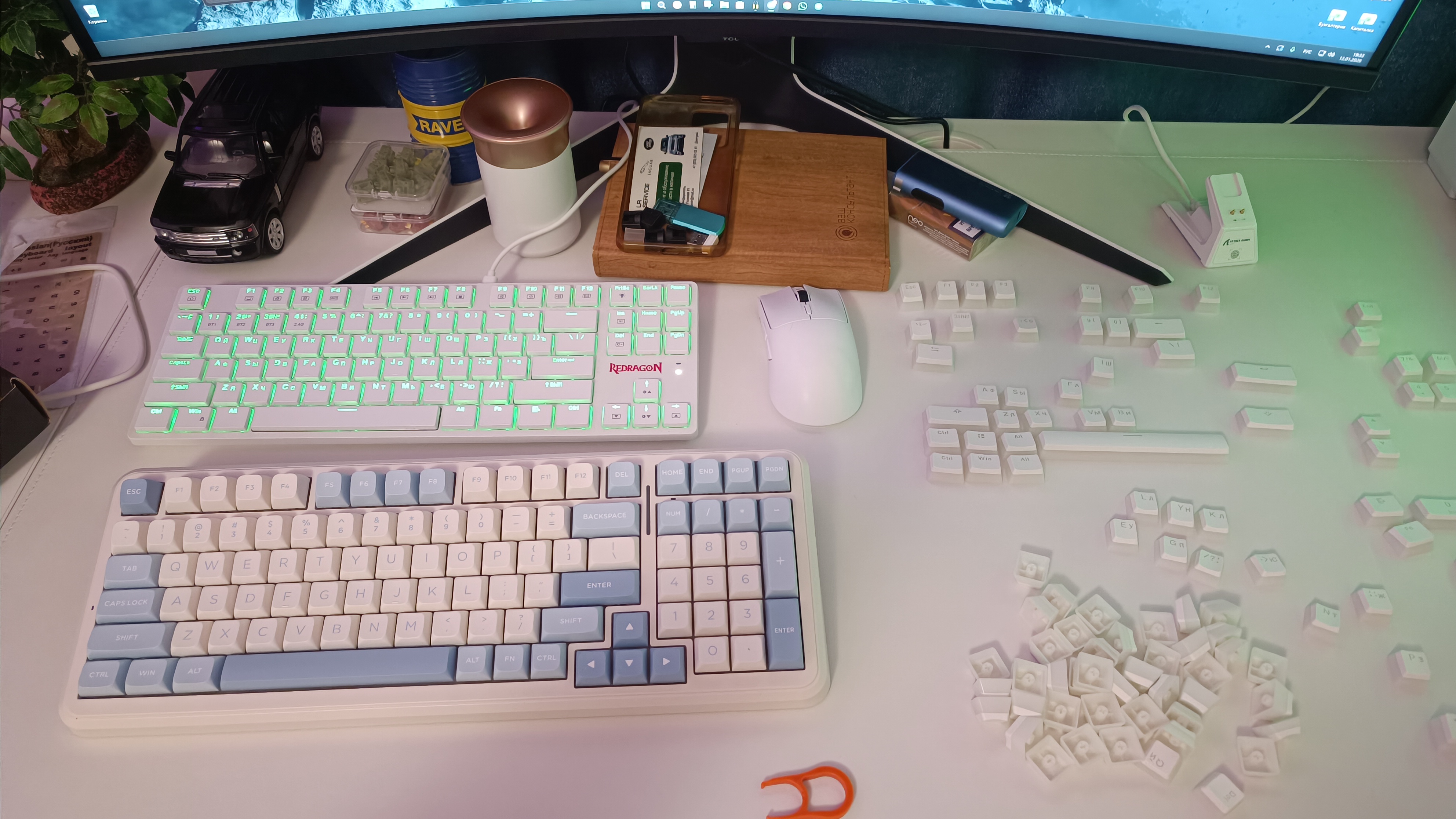 orffey благодарю! По звуку вроде приятное дело) Понравился вариант с аккумом на 8000 mah, но подсветка кейкапов снизу. Есть еще что-то на примете, но чтобы кейкапы были с нанесением символов сверху?