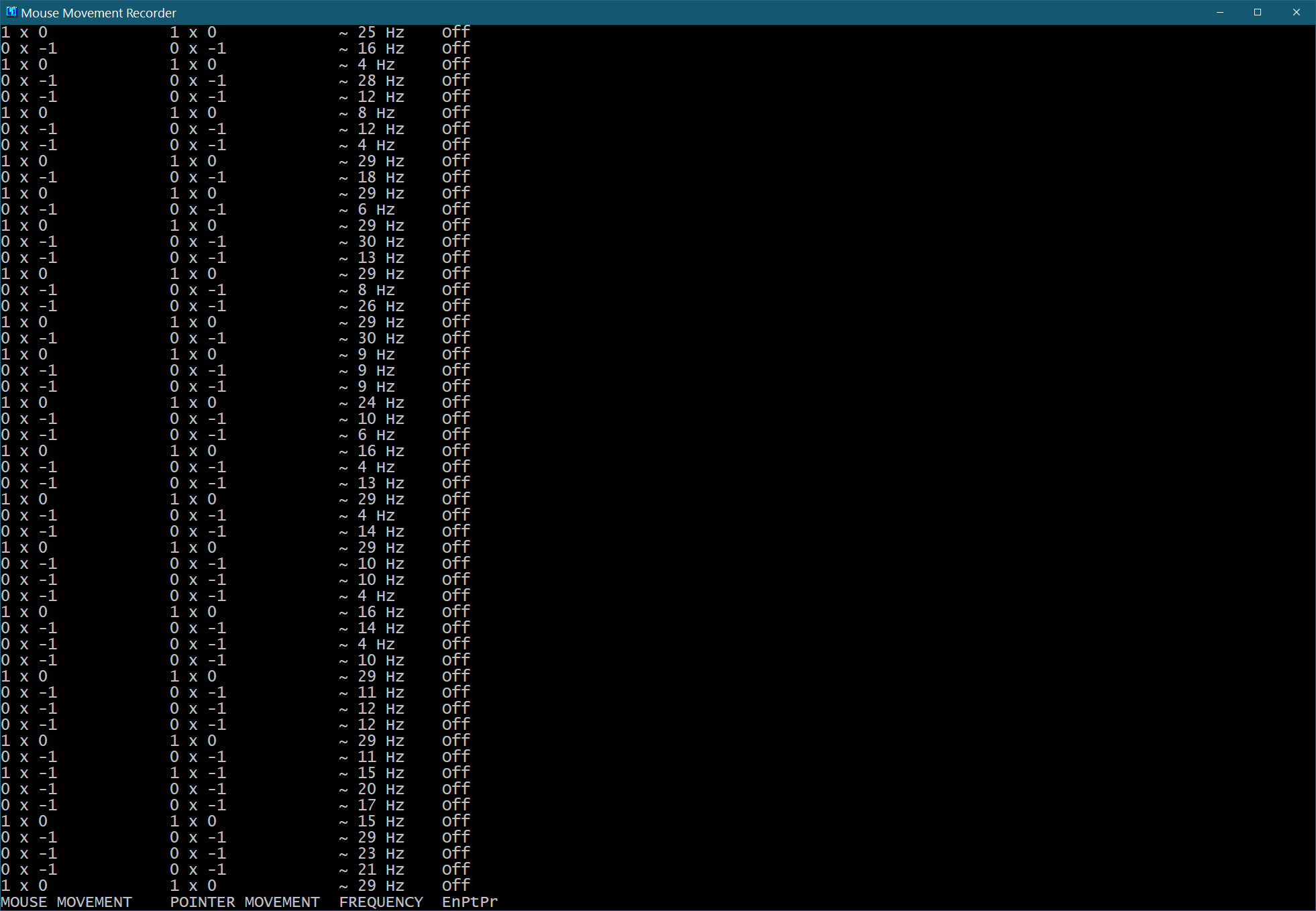Чем ниже сенса в винде, тем больше видно, что трекинг "ломается", на последнем значении винды (1) видно, что диагональные линии заменились на толстую линию как у обычных мышей, игнорирую часть пришедших данных Выводы сделаете сами, надеюсь верные.
