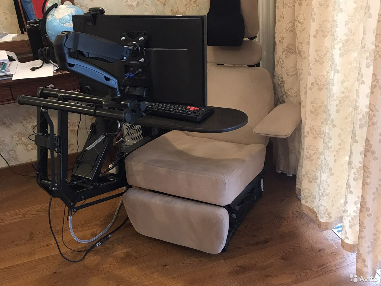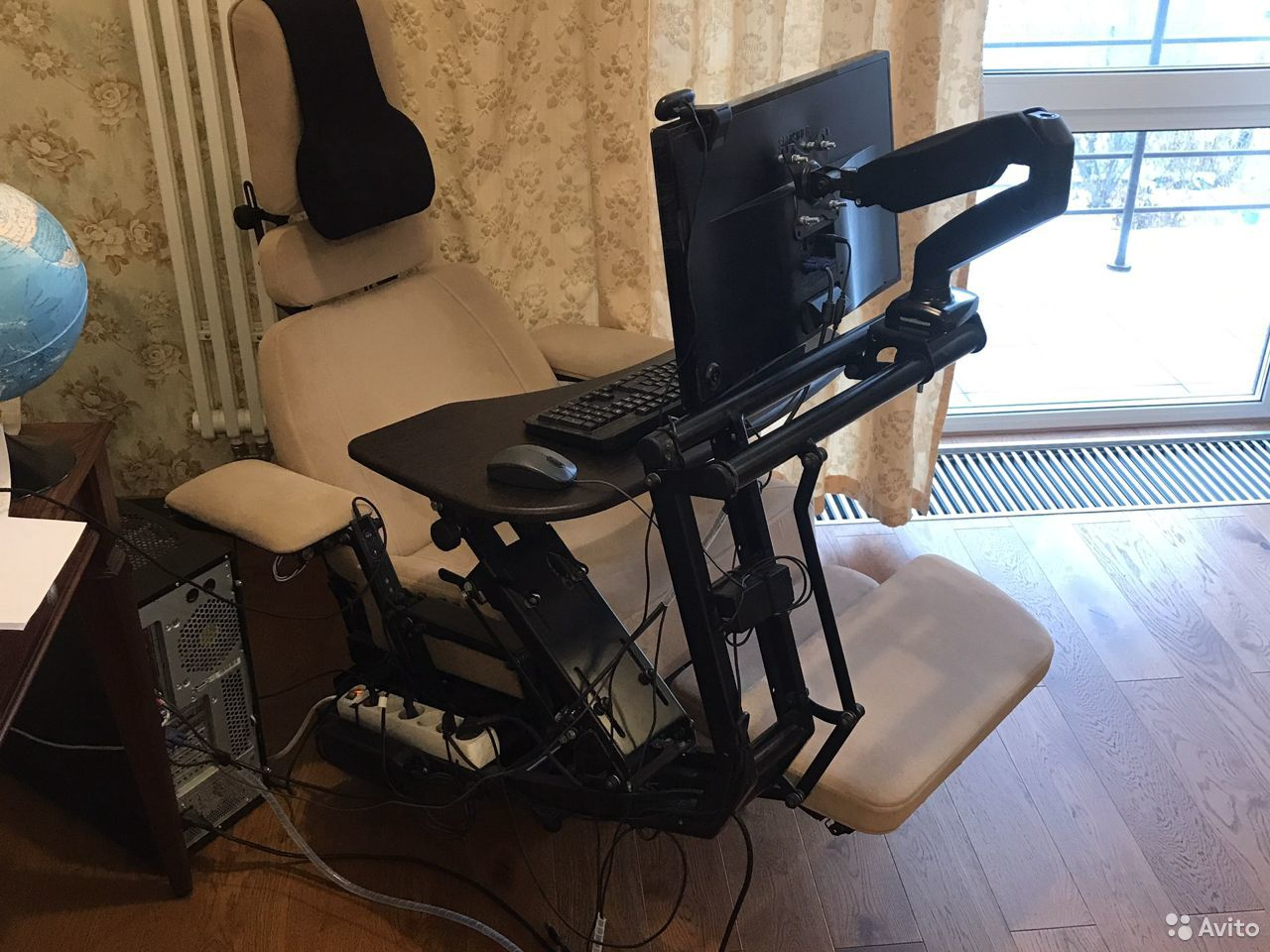 как это должно работать? Регулировка высоты каждой ноги отдельно? Синхронные электроприводы? Четыре газлифта? У любого кресла на колесах можно эти самые колеса снять и поставить стойки типа таких https://ergotronica.ru/product/stojki.html , или колеса со стопорами.