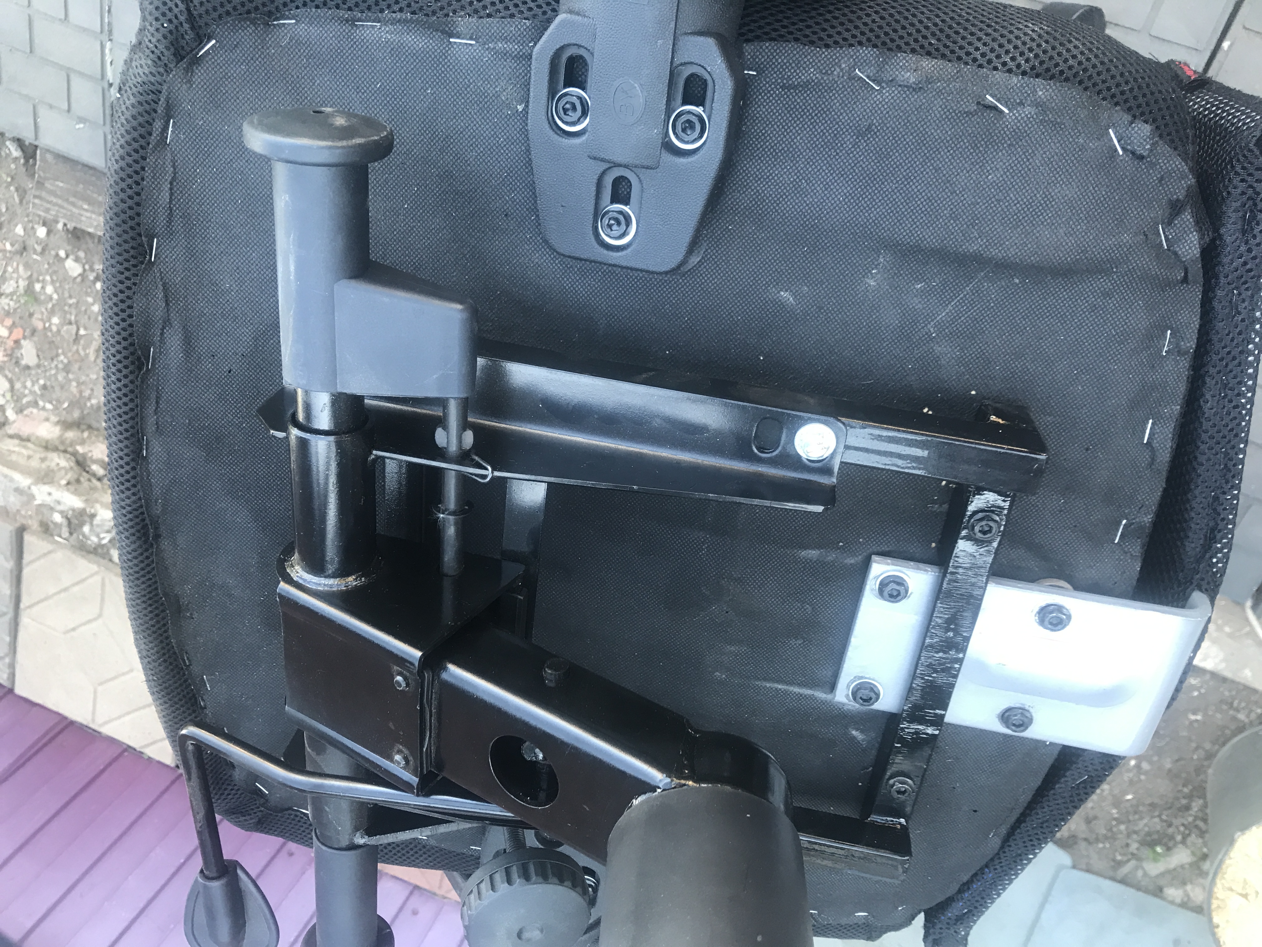 Добавлено спустя 23 минуты 22 секунды: Вчера таки наконец избавился от топ гана на кресле дочери, поставил усиленный механизм качания, для этого пришлось изготовить переходную рамку