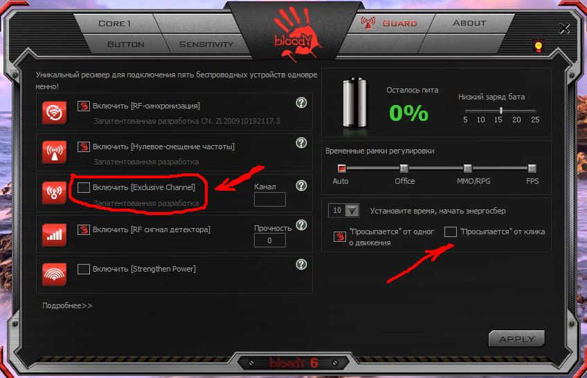 grreed Если проблемы с пробуждением, попробуйте в драйвере мышки выбрать пробуждаться от нажатия клавиши, а не от сдвига. Если же проблемы с засорённостью радиоэфира, то поближе к мышке расположите донгл, на удлинителе; также в драйвере мышки включите ручной выбор частотных каналов и поперебирать их, обычно удаётся найти оптимальный канал что б роутеры вообще не мешали.