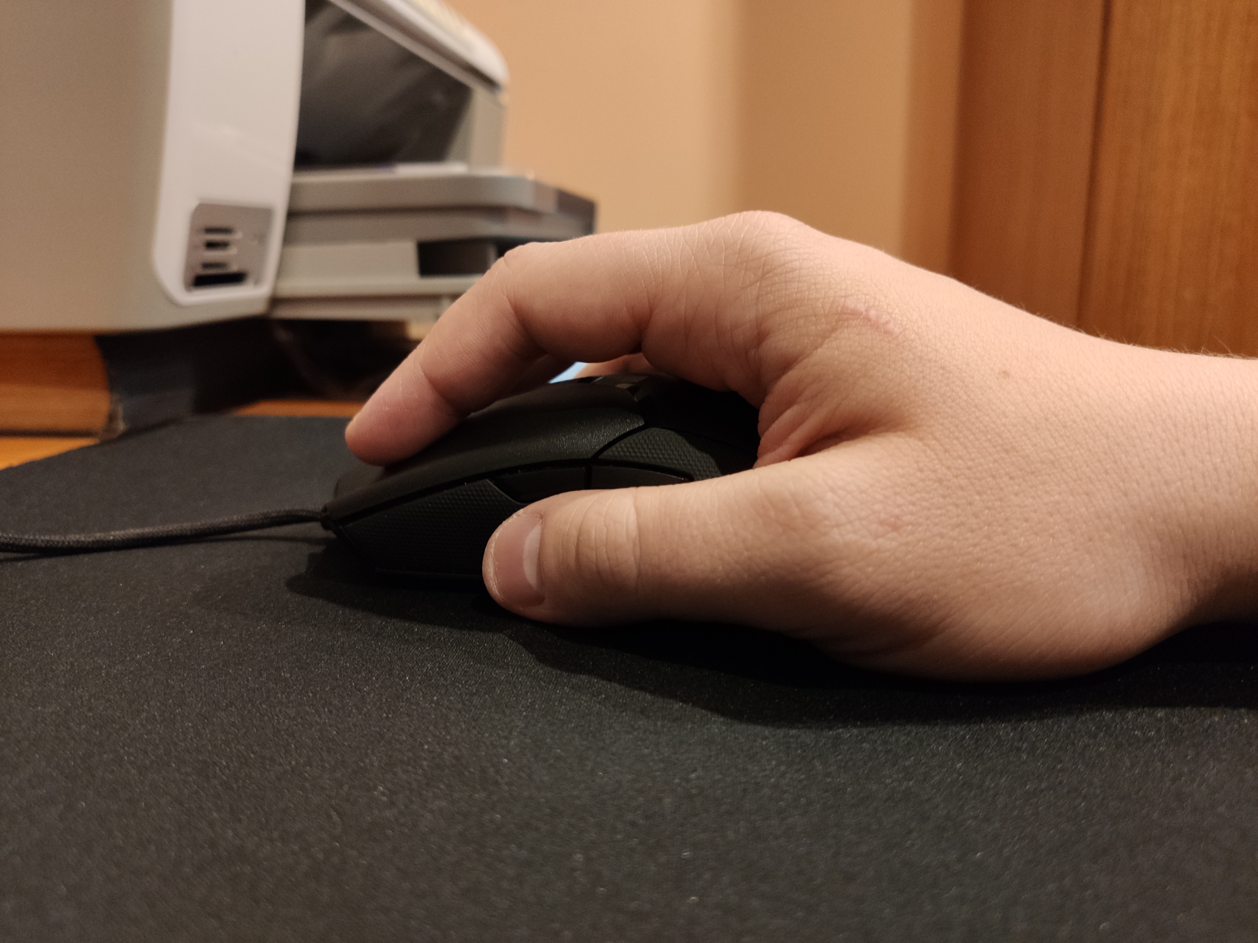 Правильный хват мышки в играх для геймеров. Считается что это «коготь» и хват пальцами. Такой тип хвата обеспечивает геймерам наибольшую точность позиционирования в играх, а так же наибольшую скорость и «точность» кликов.