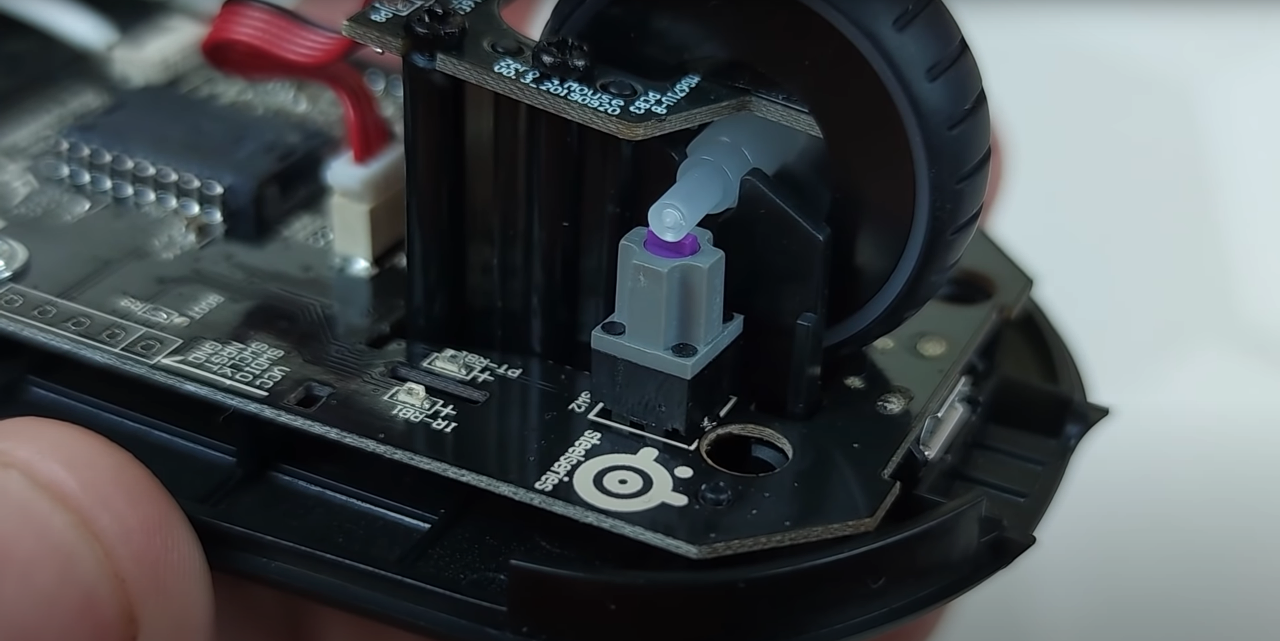 все просто, это долбит противоположная энкодеру ось колеса, которая еще давит на микрик скм, практически во всех мышах одинаковый подвес колеса, оно лежит на двух опорах с продольной прорезью, вот об стенки этой прорези и долбит ось, некий воблинг, особенно при прокрутке от себя, например в обычном вайпере колесо висит в отдельной каретке и прекрасно работает. Я на раз устраняю этот грохот без всякой смазки, клею двухсторонний скотч на акриловой пенке вдоль этой прорези с небольшим заходом краешка скотча в просвет прорези, защитную пленку со второй стороны не снимаю и немного заворачиваю этот торчащий краешек внутрь прорези, в итоге ось колеса легко скользит по пленке скотча и нормально перемещается по вертикали для клика скм. Скотч работает как пружина, всегда поджимает ось и не дает ей воблить, в итоге получаем тихое и плавное колесо. Ютубчик завален роликами местных мастеров, кто-то просто мажет паз с осью, кто-то клеит алюминиевую ленту в зазор, в итоге в долгосроке колесо опять забренчит. У меня сейчас GPW, купил 18.09.21, месяц назад загремело колесо, те самые удары в продольном пазу, значит смазка фсе и не помогает даже пружинка которая там есть и жмет ось сверху. На мои заявления что никакой смазки в мышке быть не должно, кроме как внутри энкодера, местные кулибины реагируют болезненно и кидают в ЧС, хотя этот ушлепок реально ремонтил кучу мышей и не смог получить опыт по смазке, у меня 300 лет работают всего несколько мышек, которые я делал знакомым и детям. Беленький скотч на акриловой пенке, толщина 1мм, только не дешманский и все ребята, вечная тишина, 300 лет точно.