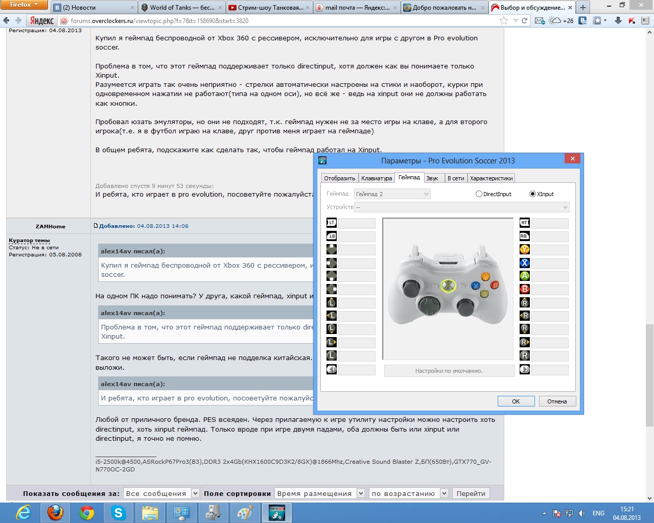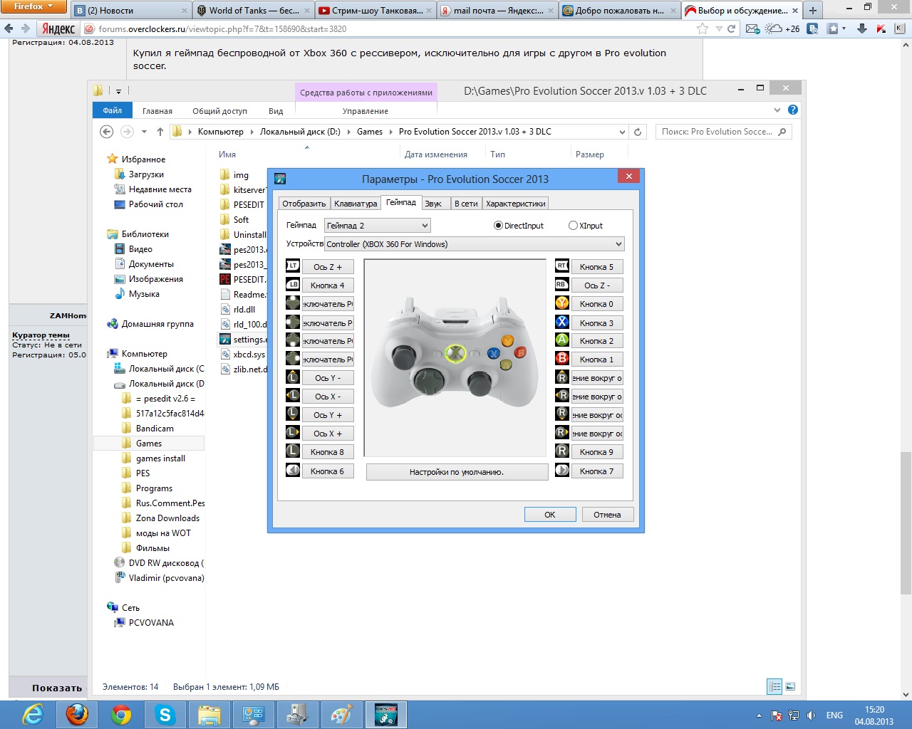 Купил я геймпад беспроводной от Xbox 360 с рессивером, исключительно для игры с другом в Pro evolution soccer.