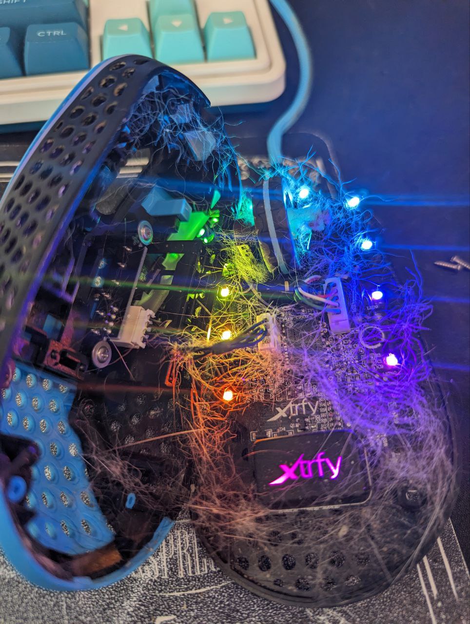 - только у конченых свинот мышки пачкаются. У меня шотландец периодически сидит на столе и глориус моделО пару лет пользовался без проблем и шерсти внутри.