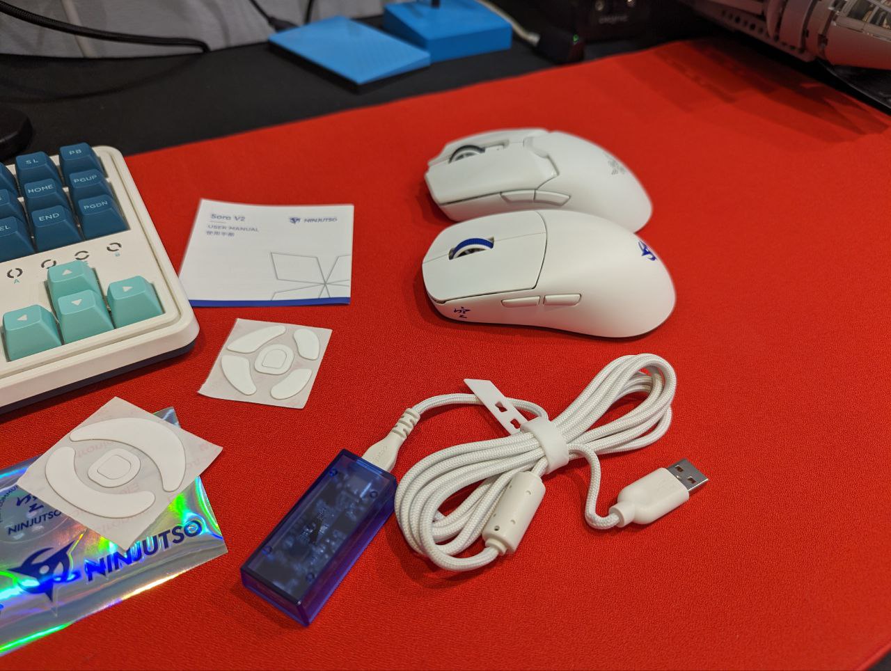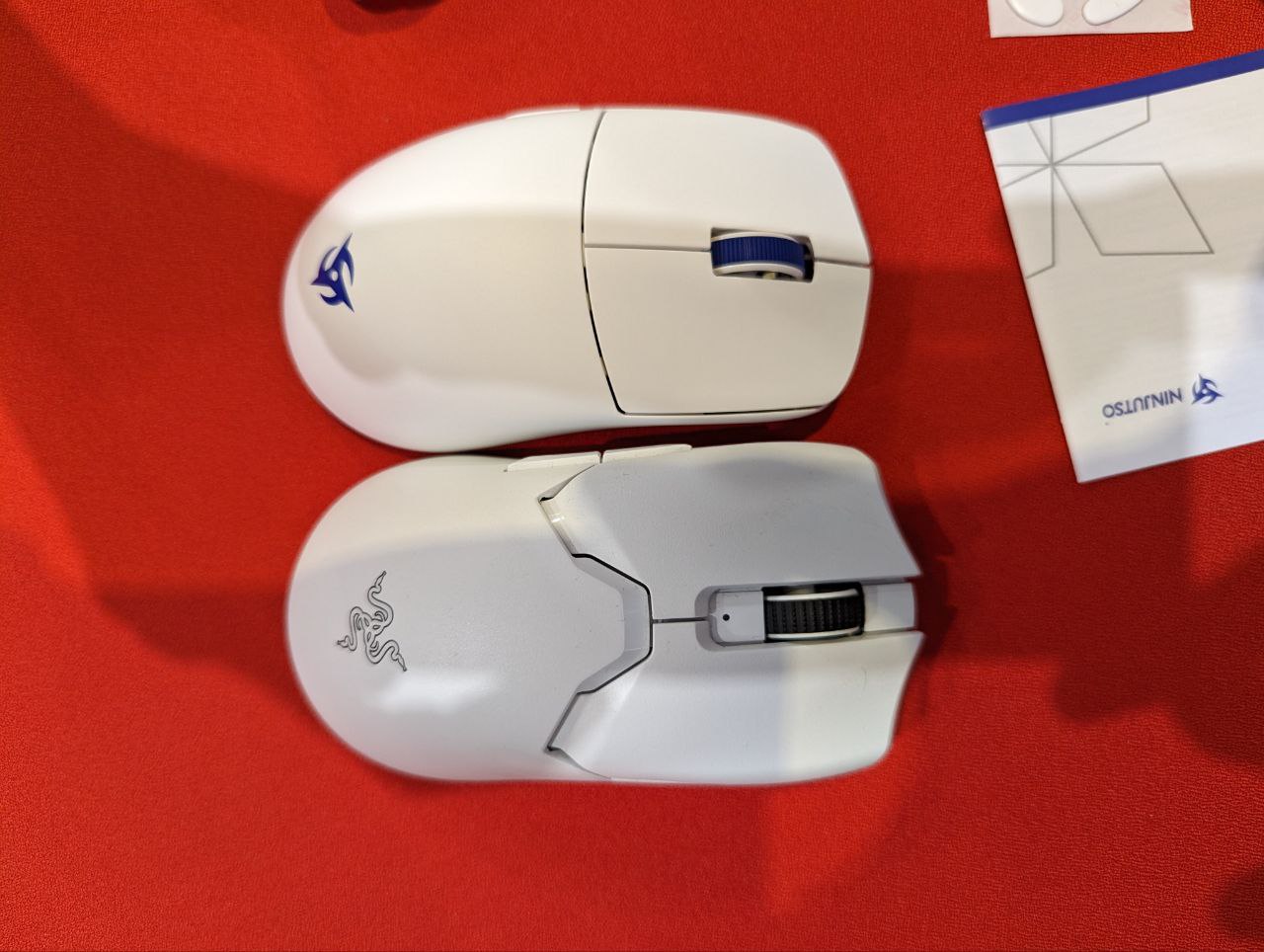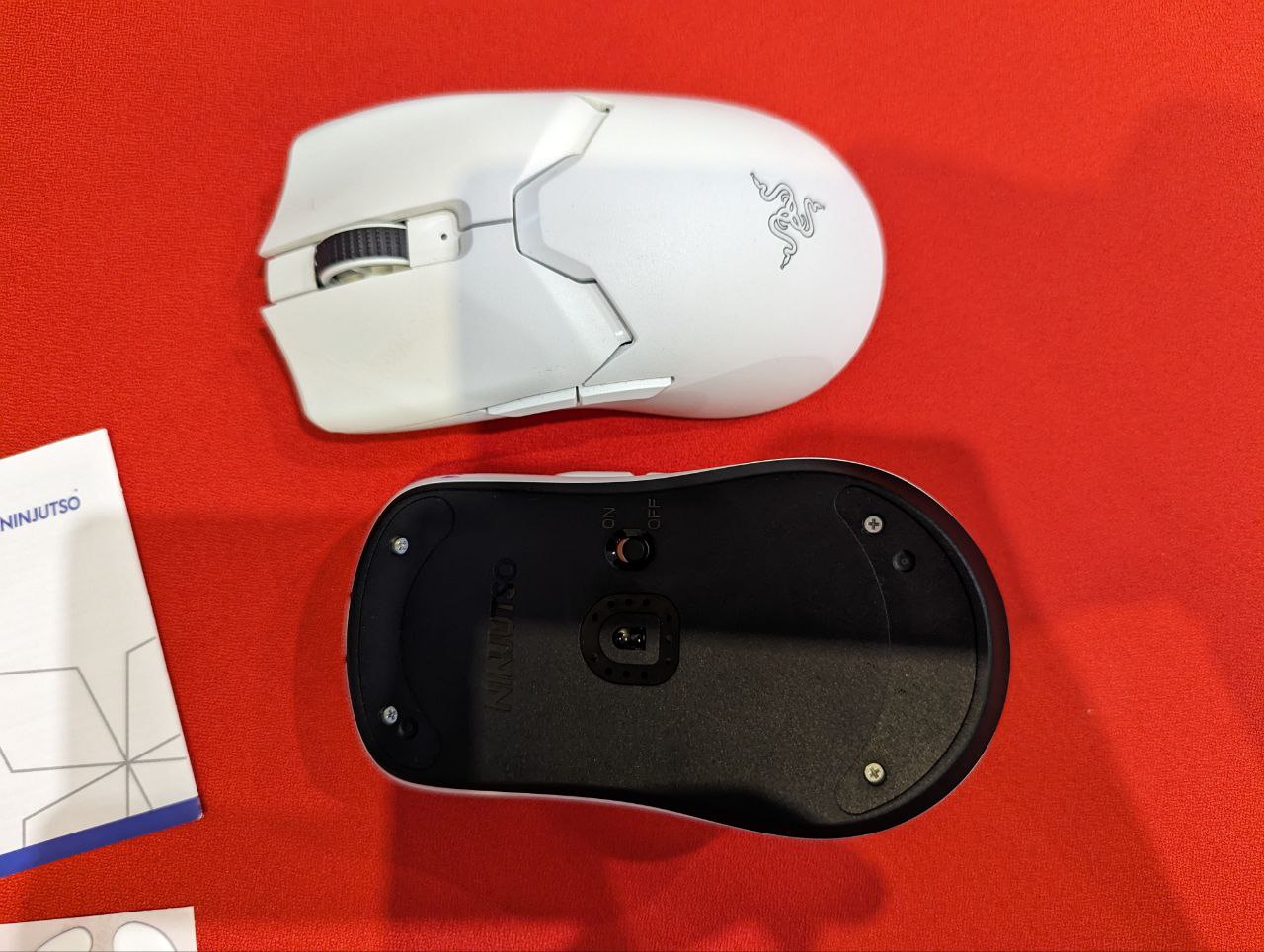 Пришла, наконец, спустя месяц Ninjutso Sora V2. Очень легкая, но ничего не скрипит, не люфтит. Четкие клики и колесико. В сравнении с Viper V2 Pro заметно меньше и легче, покрытие более глянцевое.