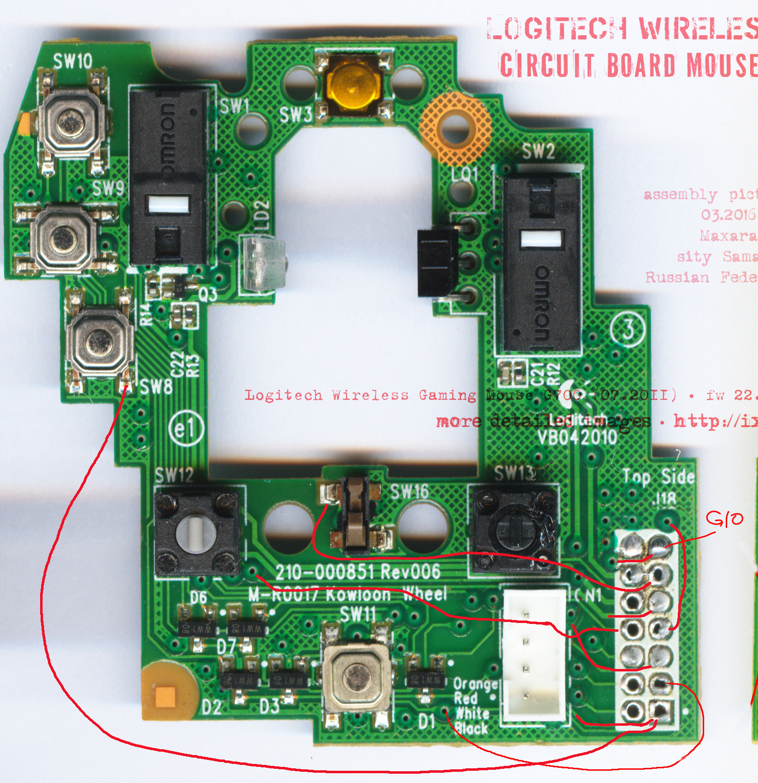 оторвалась почти вся правая сторона, там сложнее. левую вроде восстановил соплями, но руки уже не те, сложно мелочь паяется. по итогу не работает левый клик и левый наклон колеса. вы мне с год назад схему присылали и по ней все вроде звонится