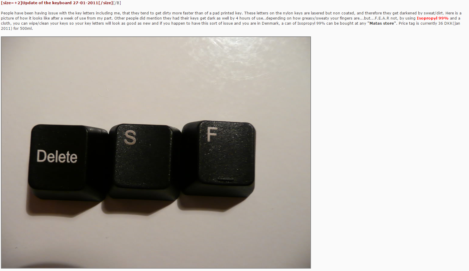 Не прошло и двух недель,как уже маркировка клавиши А,стёрлась в гавно ноль почти.Все белые,она уже серая.И то,надолго ли?На W/S/D тоже заметны симптомы.Всё что делал,перепрошёл Crysis и Crysis Warhead+печатки чуток...Неприятный сюрприз от клавы за 100Eu.