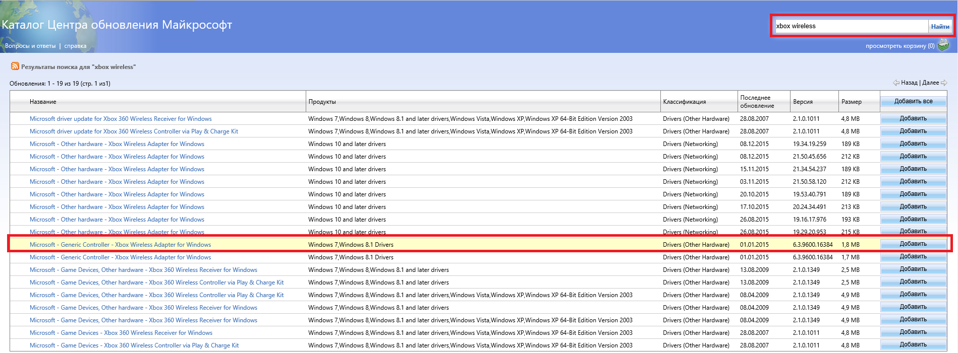 Добавлено спустя 20 минут 52 секунды: Значит так. Чтобы откатить глючный xinputhid драйвер XBox One геймпада, на предыдущий. Заходим сюда -> http://catalog.update.microsoft.com/v7/site/Home.aspx (работает только через Internet Explorer), забиваем в поиск "XBox Wireless" и качаем этот драйвер: