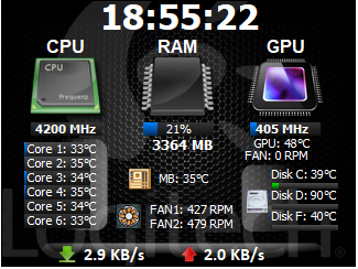 Согласен, очень мало апплетов для G19. Я использовал найденный где то на просторах или даже на этом форуме с системной инфой. Инфу берет из аиды. Закинул в архив, не пропускало с расширением lglcd.