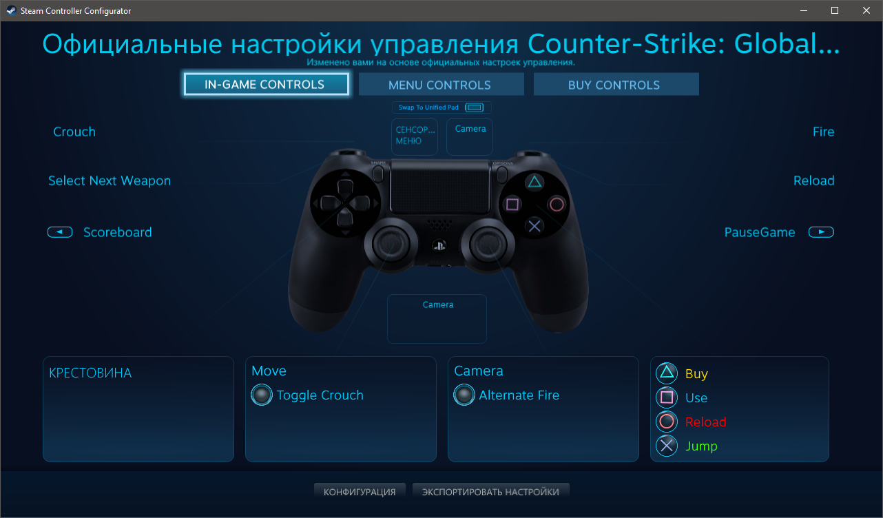 Добавлено спустя 1 час 3 минуты 32 секунды: Все плюшки и настройки Steam для Steam-контроллера, доступны и для DS4. При этом оба контроллера не конфликтуют друг с другом, можно не отключая один, пользоваться другим: