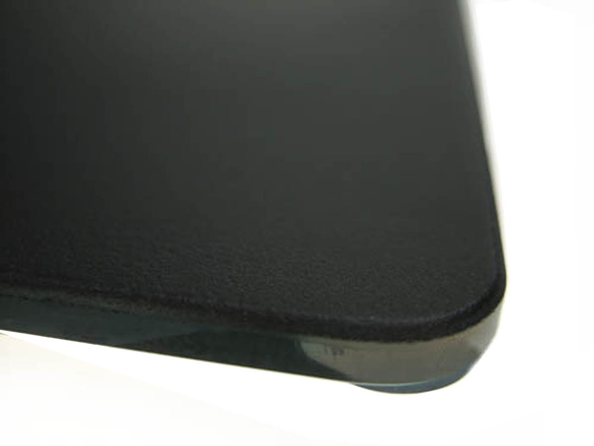 у меня есть странность с аналогичной теркой - после того, сама терка намного более гладкая чем матируемое стекло - почти шелк без рельефа, а коврик как наждак с заметными перепадами