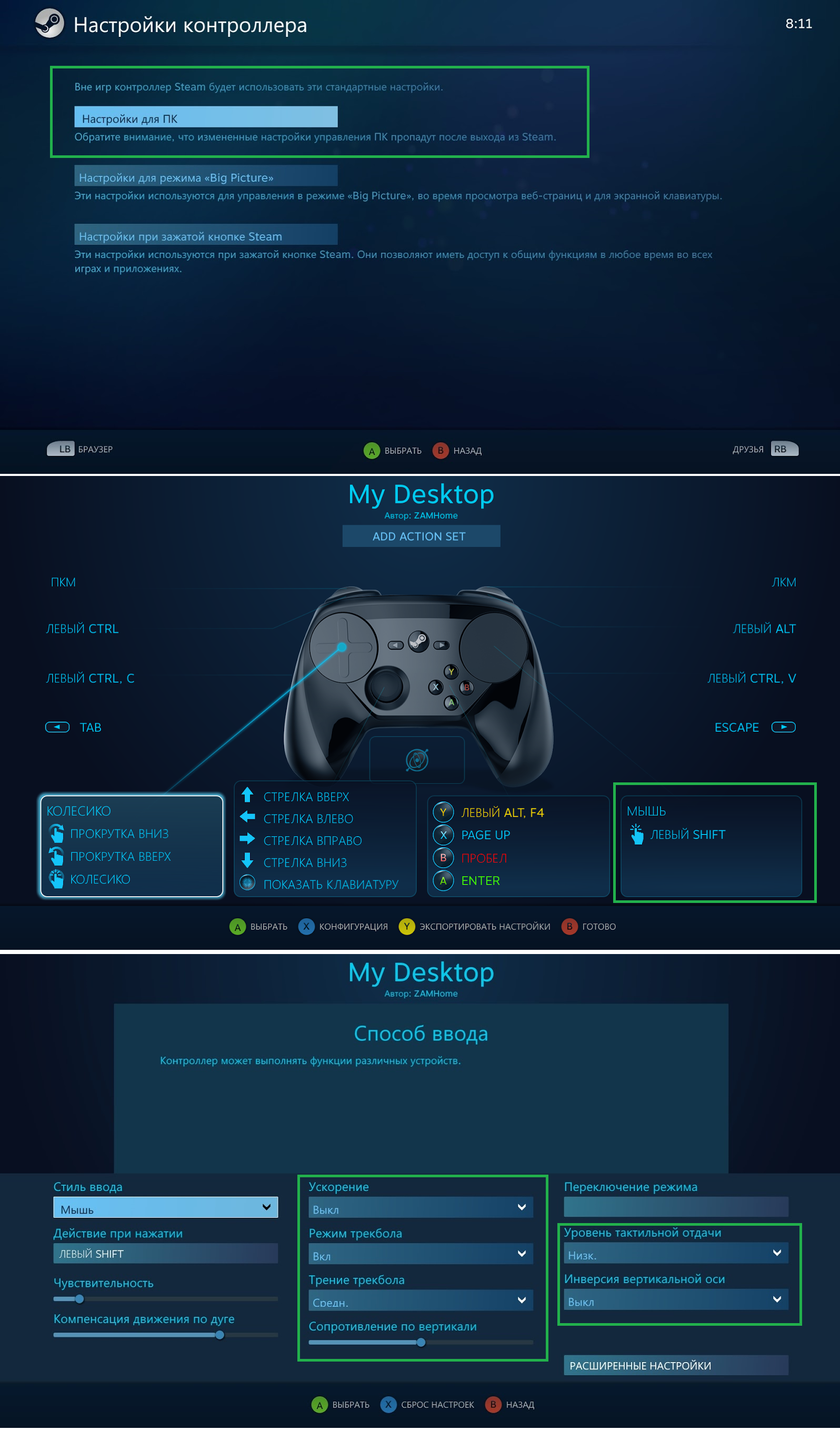 Весь основной функционал геймпада работает исключительно с запущенным в фоне клиентом Steam.