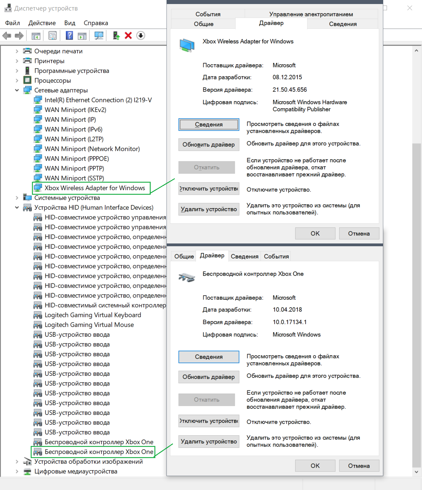 safari, в смысле заменить на стандартный? А ты какой ставишь? "XINPUT compatible HID device" - это откуда ты взял? У тебя десятка обновлена до актуальной версии? Десятая винда по дефолту и так правильные драйвера ставит: и на адаптер, и HID, ничего своего ставить не нужно. Чего там на семёрке происходит - я не в курсе. Там изначально танцы с бубном были с беспроводным подключением.