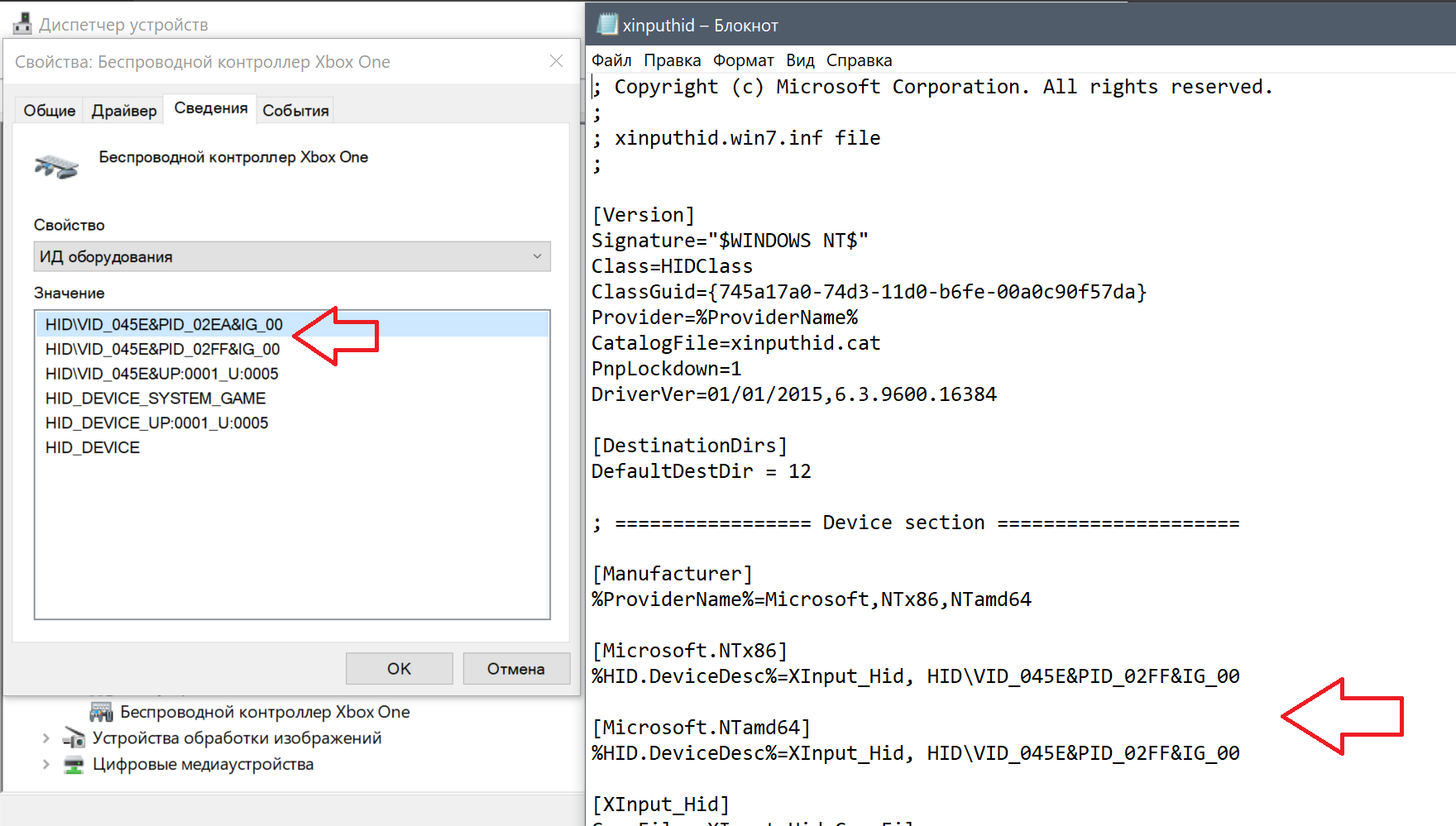 VID_045E&PID_02D1 - геймпад первой ревизии без 3,5-мм входа под наушники VID_045E&PID_02D2 - геймпад первой ревизии без 3,5-мм входа под наушники VID_045E&PID_02DD - геймпад второй ревизии с 3,5-мм входом под наушники VID_045E&PID_02FF - геймпад третьей ревизии с 3,5-мм входом и поддержкой Bluetooth VID_045E&PID_02EA - геймпад третьей ревизии с 3,5-мм входом и поддержкой Bluetooth VID_045E&PID_02E3 - Xbox Elite Controller VID_045E&PID_02E6 - беспроводной адаптер (большой) VID_045E&PID_02FE - беспроводной адаптер (маленький)
