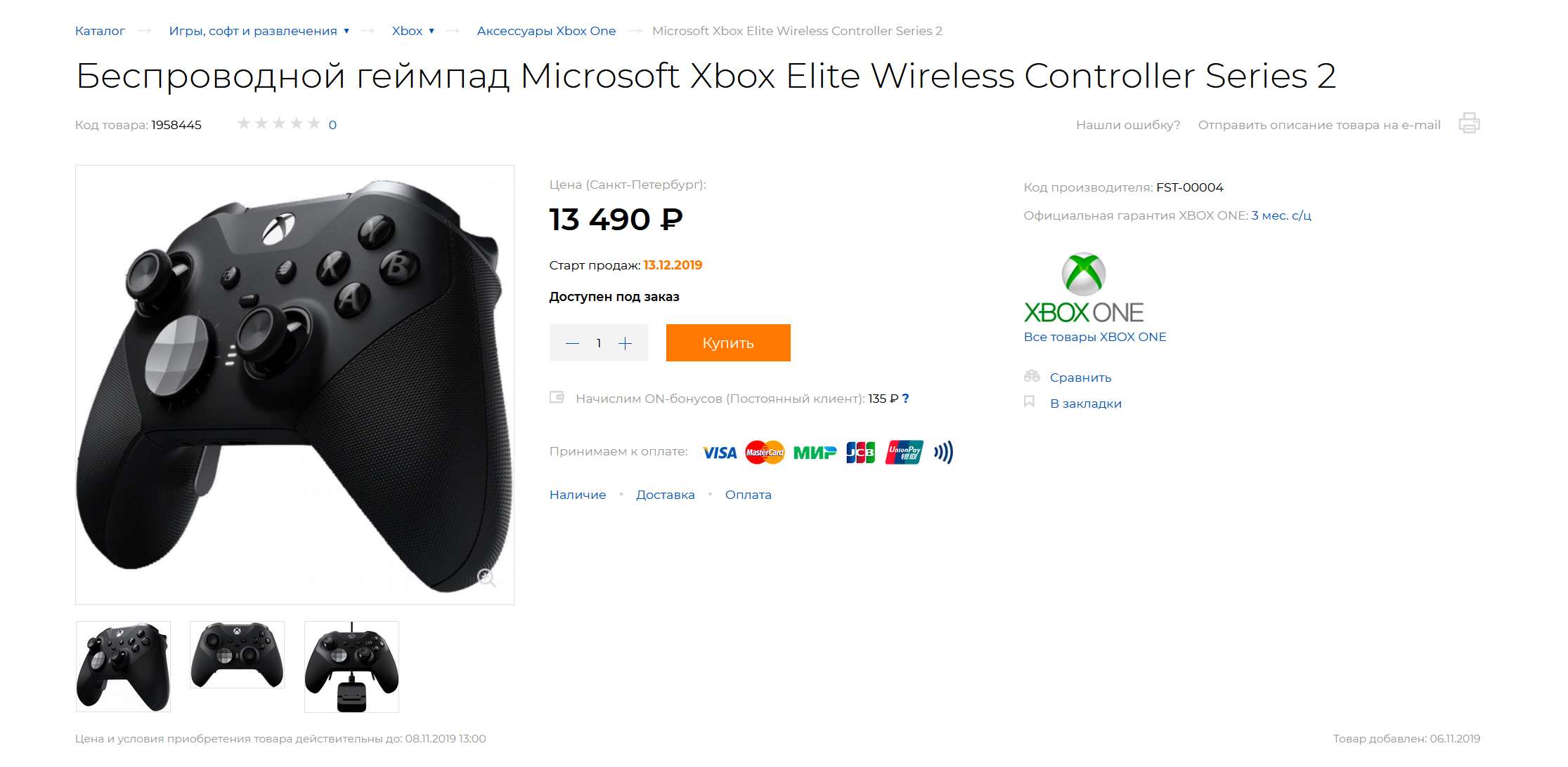 Возможно с середины декабря Xbox Elite Wireless Controller Series 2 начнёт продаваться в РФ. По крайней мере в одной крупной торговой сети, геймпад уже доступен к предзаказу. Код производителя - FST-00004.