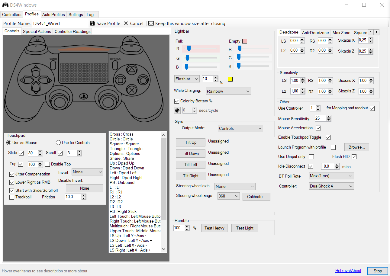 По настройкам профиля эмуляции проводного DS4v1, так: