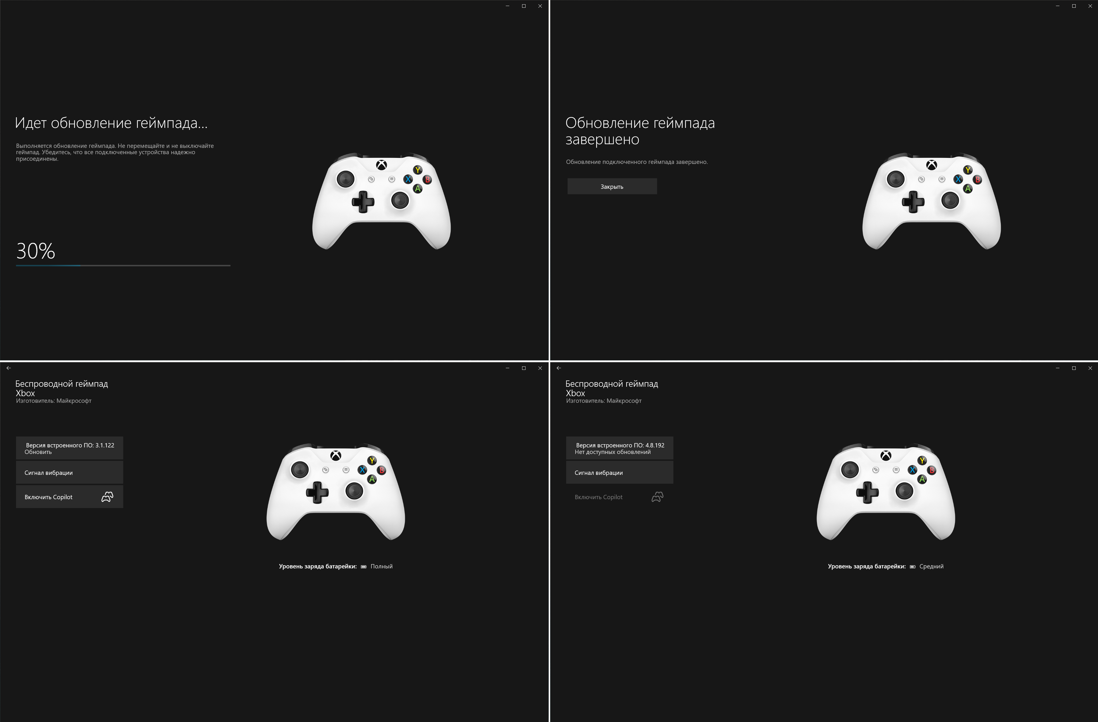 На мой XBox One Controller (третей ревизии) прилетело обновление прошивки через приложение "Аксессуары XBox" для ПК. Была версия прошивки - 3.1.122, стала - 4.8.192 Правда Windows 10 сейчас установлена инсайдерская - 19023.1. Не факт, что на обычную версию Windows, что-то прилетит. Вот, нагуглил список изменений в новой прошивке: