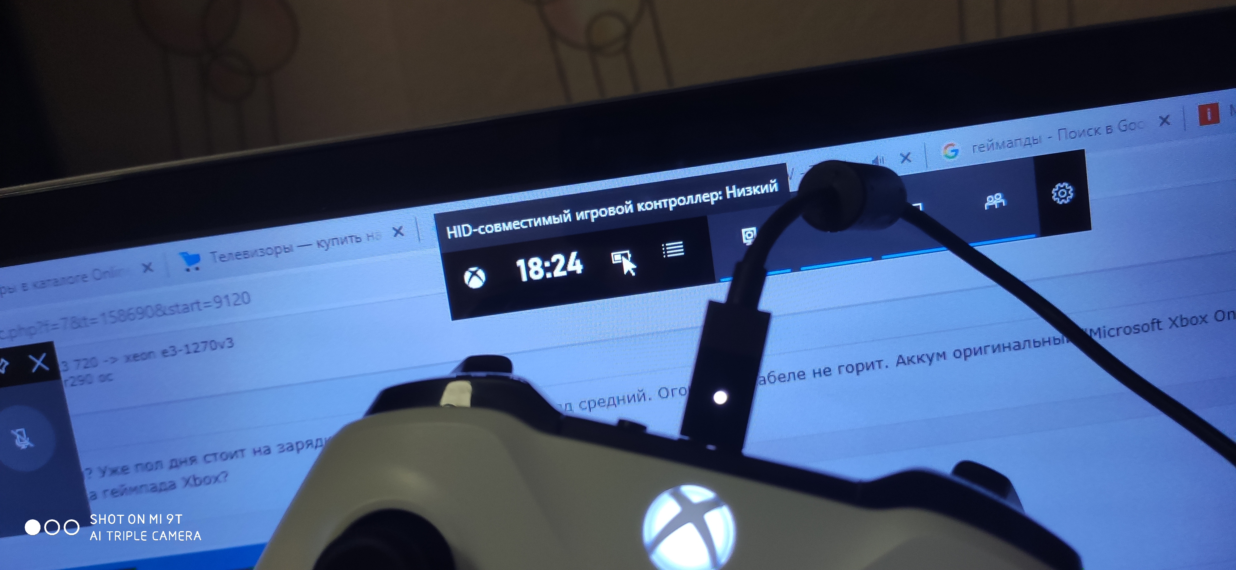 Есть пара вопросов по контролеру xbox one. Контролер подключен без провода через оригинальный адаптер первого поколения (большой) 1) у меня геймпад чёрного цвета, но в Аксессуарах xbox отображается белый. Это нормально? #77