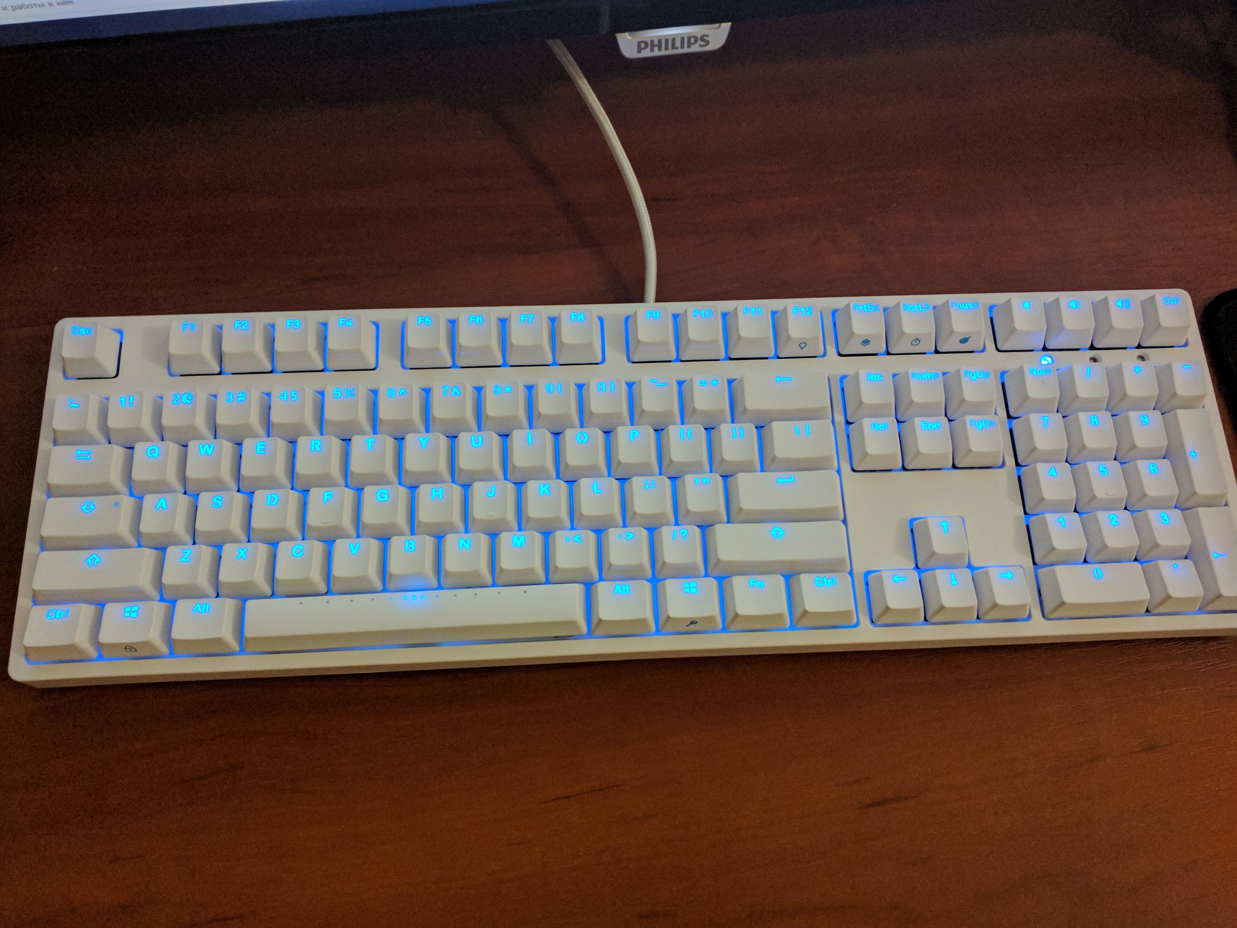 Клавиатура приятная, стабилизаторы супер. Но некоторые кнопки немного "скрипят" или как то так, есть небольшой призвук пружин, если прислушиваться. Подсветка очень хорошая, с ней клавиатуры выглядит красивее, хотя мне была не нужна, взял версию с ней только из-за даблшотов.