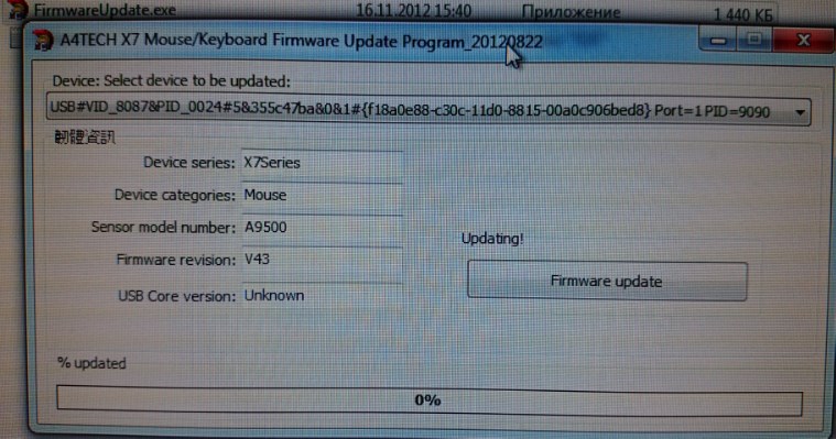 Тут в теме еще вычитал где-то, что на эту мышь бывают прошивки. И, возможно, они помогают улучшить поведение сенсора. Даже в одном из сообщений была ссылка на прошивку и программу прошивания. Вчера запустил эту программу, она показала про мою мышь вот что (см. фото). Но в том архиве, что я скачал, прошивка v42. У меня, как видно v43. Где можно найти эти прошивки? И есть ли смысл её менять?