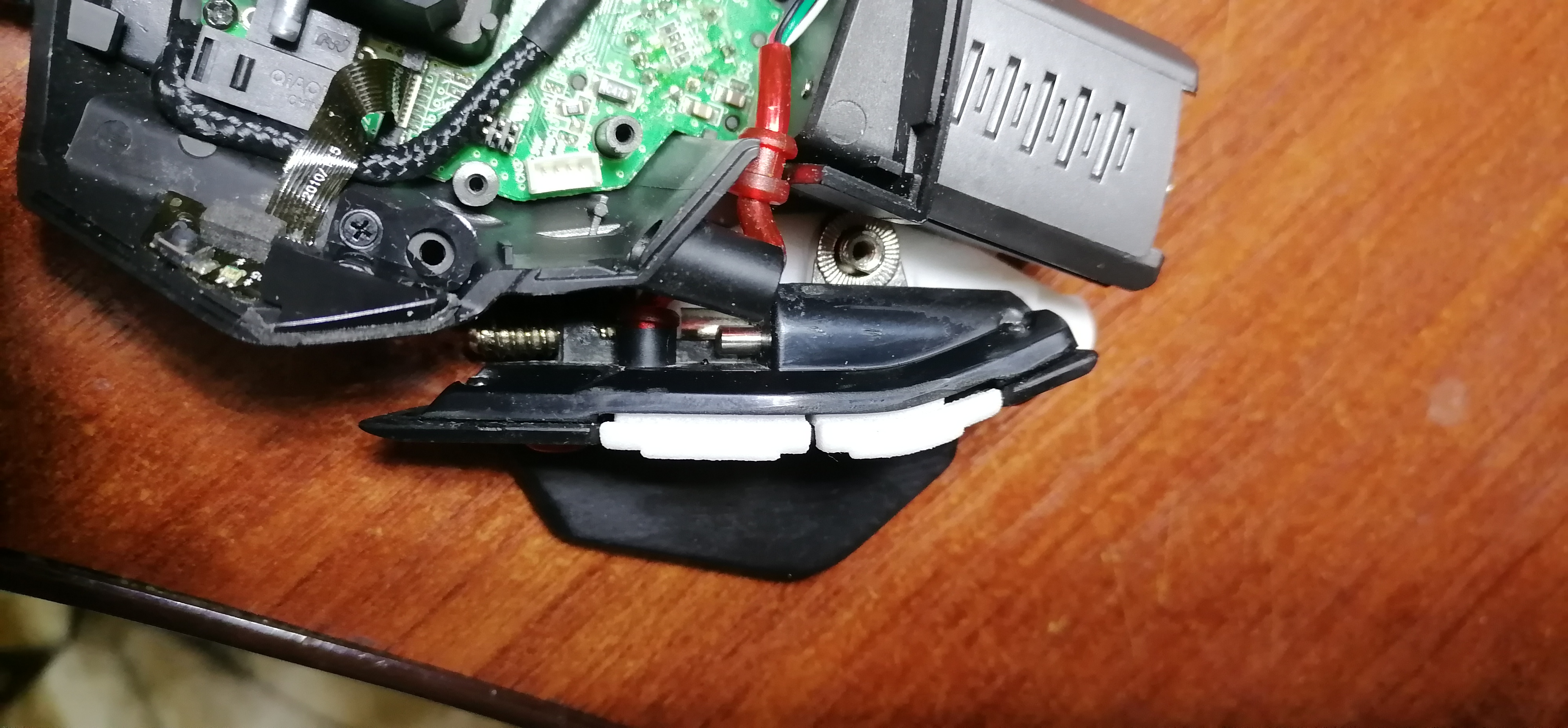 всем привет. пришлось тут разобрать кнопку на колесике........ заглючила. разобрал - контакт был весь чОООрный и окисленный. почистил - полет нормальный . надо было пружинку чутка ослабить, забыл млинн.