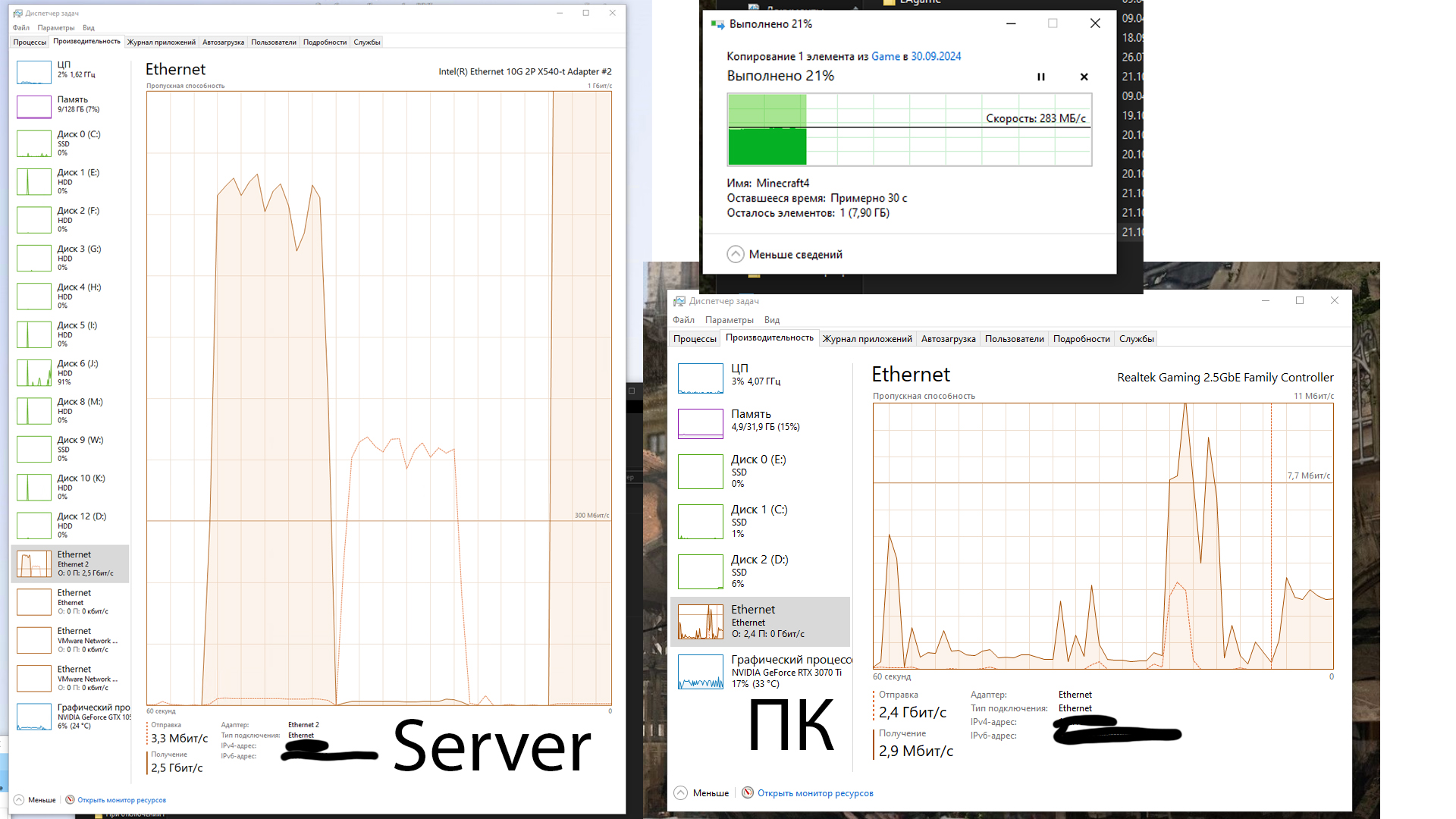 Здравствуйте, интересует вопрос о согласование скоростей между сервером и персональным пк. Суть - на сервере скорость портов 10 Gb/s, это максимум. Есть режимы согласования - авто/1Gb/s и 10Gb/s. На Пк максимум порт может принять 2,5Gb/s. Но режимов согласования больше. 10Мb/100/1Gb/2.5Gb. При попытке отправить файл максимально скорость достигает 1Gb, почему понятно, но вот вопрос, если в разрез, поставить коммутатор у которого есть порты с согласованием полного спектра и 1Gb и 2,5Gb и 10Gb, поднимется ли скорость при передачи данных между пк и сервером? Или это бесполезный костыль? И лучше купить карту сетевую на 10 Gb/s в ПК? Просьба писать по делу.
