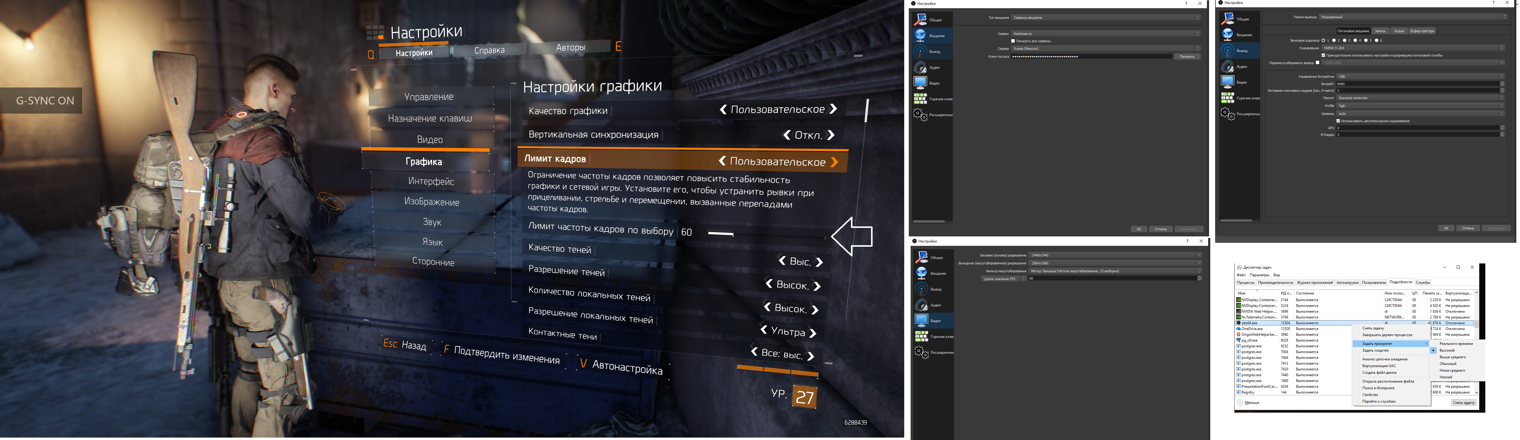 Agiliter Картинку прикрепил со всеми настроками. картинка ровная и гладкая только ,когда в игре в настройках выставляю лок на 60кадров. если снять появляются лаги (Причем если сторонними прогами это делать ..не помогает!). Подскажи ,как исправить .Видел стримеров ,которые стримят в таком же разрешении ,без локов фпс ..и картинка ровная.