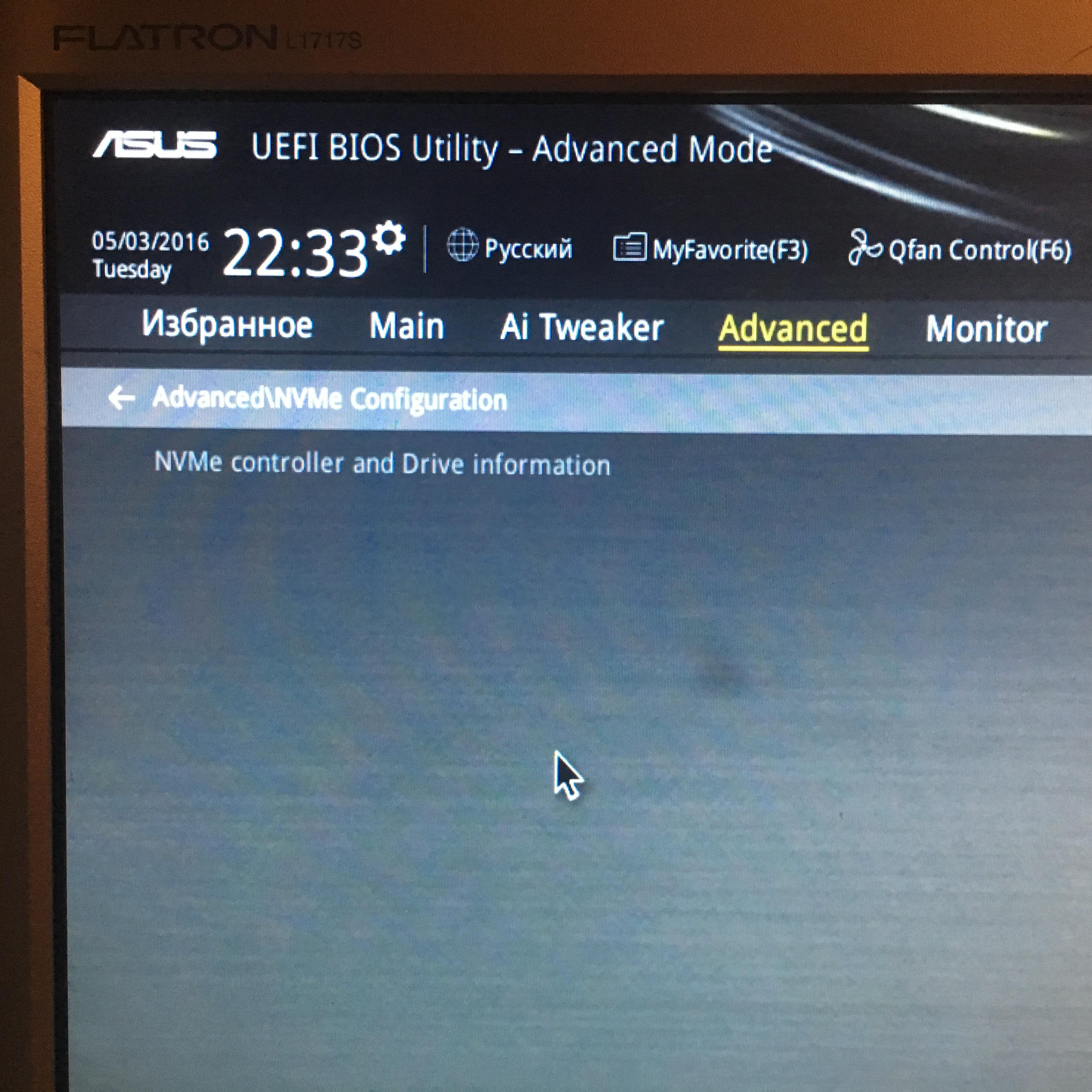 Информация отображается в БИОСЕ о диске, но я предположил, что должно где-то включаться поддержка NVMe. Материнская плата ASUS X99-A/USB 3.1 LGA 2011-v3, ATX, Ret. Жаль, что винде осталось жить 12 дней.
