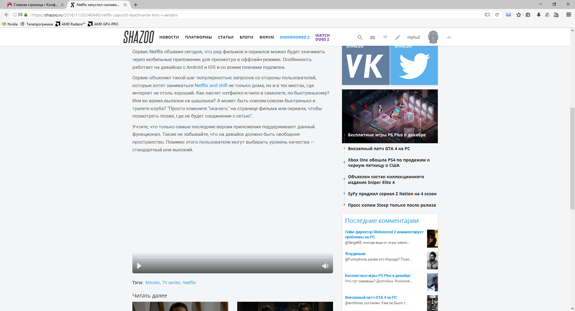 cibershotХаныга Хватит гнать! Отлично Лиса работает с YouTube, ничего лишнего не жрёт, все плагины работают: #77#77 Вот ролик в 8К идёт в Лисе без проблем, из начальных 1.8 Гб использованной системой памяти "отожралось" до 3.1 Гб - это что, много? Нормально! Зато по сравнению с IE11 и EDGE ролик идёт ровно и без артефактов. Хром? А причём он здесь, в этой ветке?