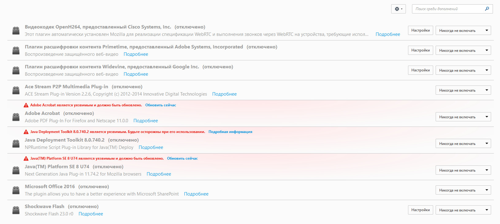 Помогите, пожалуйста! Уже давно вот такая фигня наблюдается (см. скриншот). Не знаю точно, с какого ресурса, но такие вот видеоролики нефига не отображаются и не проигрываются в Firefox 50.0.1 Иногда вот такой вот "плейер" замечал на сайтах, где можно было напрямую перейти на источник (и это оказывался твиттер) и там в твиттере всё нормально проигрывалось ADBlock точно не влияет, я его уже пробовал отключать.. Может какие-то другие плагины за это отвечают ? А то Java давно не обновлялась, т.к. Firefox заблокировал его обновление.