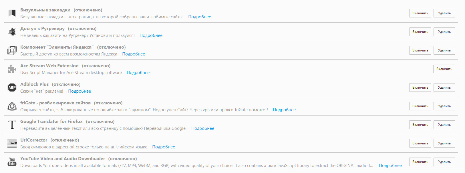 Для повышения удобства работы с браузером вы можете устанавливать расширения, а для изменения внешнего вида браузера - темы. Также расширения можно искать в окне установленных расширений браузера (about:addons).