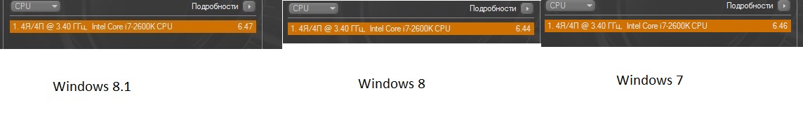 grigosha спасибо, с этим разобрался. После установки винды решил сразу протестировать скорость работы, по сравнению с семеркой. Cinebench 11.5: Windows 7x64 - 8.55 pts Windows 8.1x64 - 7.95 pts (-0.6pts !) Aida64 показала такие шокирующие рез-ты: #77 Падение производительности просто ужасное по всем характеристикам Память вообще просела в 2 раза (!). В добавок ко всему по умолчанию установленный режим электропитания как "Сбалансированный" заставляет работать процессор на полную (x39~3.9Ггц). Установка режима "Экономия энергии" сбрасывает множитель до минимального (10). Процессор начинает работать на 800 МГЦ, НО в этом случае раскочегарить его даже до 1.25 во время веб-браузинга становится очень проблематично. До такого значения он разгоняется только при запуске мазилы, и снова сбрасывает до 800. Причем на 800 практически невозможно серферить, тормозит! В семерке таких проблем за 5 месяцев не заметил, всегда повышался множитель до нужного значения. Что делать? =\