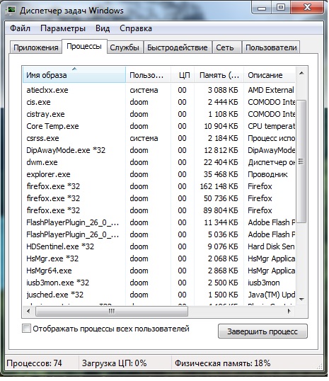 Интересно чукчи пляшут У меня тоже 7-ка 64 и процессов аж 3 с одной открытой вкладкой