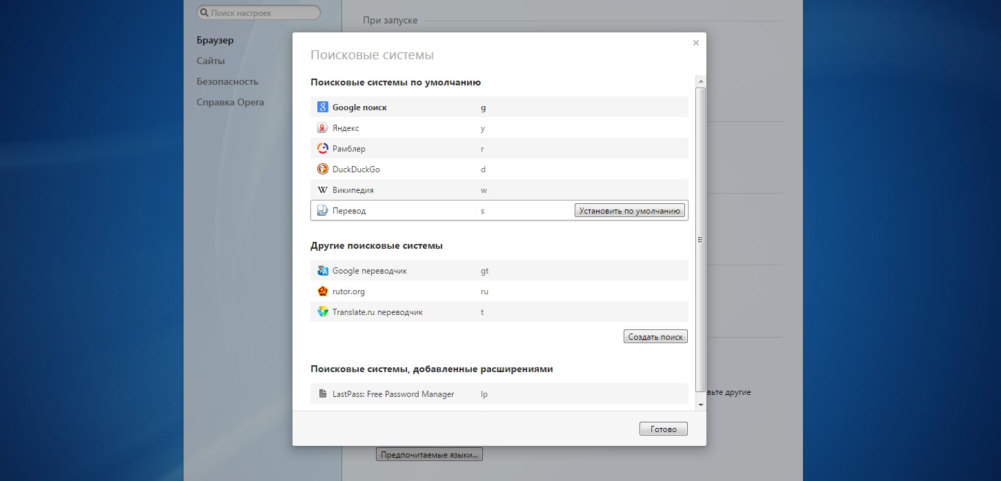 Оставить только гугл и яндекс. Давно хотел лишнее от туда удалить, но как то смирился что просто в настройках это не сделать, а сегодня заметил что ещё какой-то дагдаггоу добавился, который меня бесит. Пытался искать в папке C:\Users\Администратор\AppData\Roaming\Opera Software\Opera Stable файлы содержащие в себе этот дагдаггоу, нашлось файлов 15, наверно, все удалил. Пропали расширения, иконки, но поиск как был так и остался P.s. Буду очень признателен за помощь